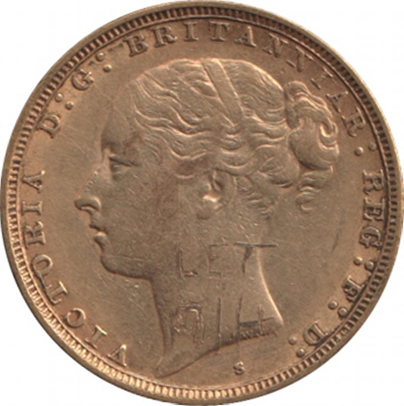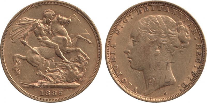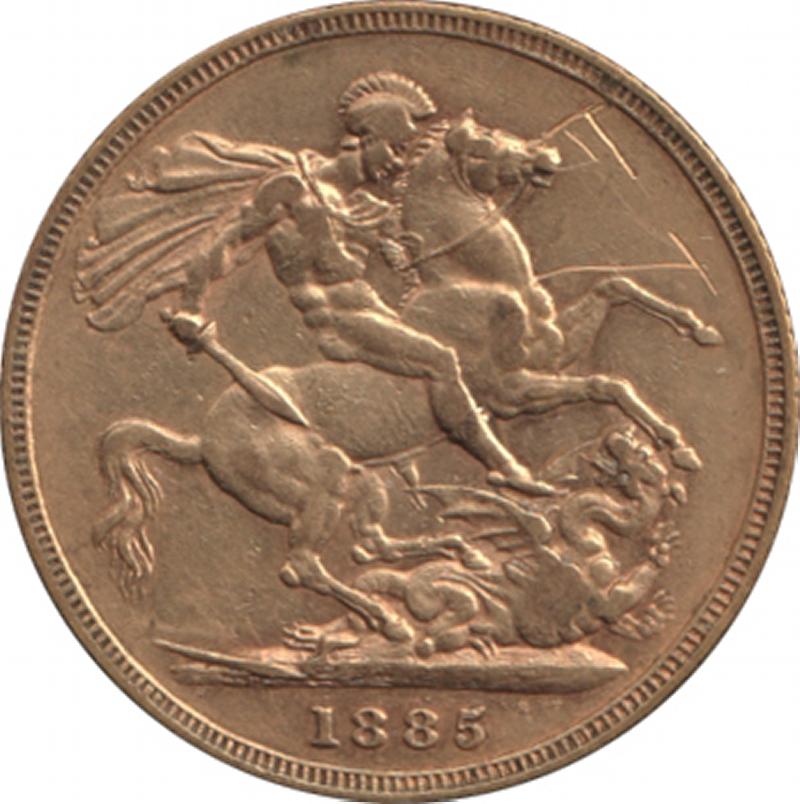 1885S QV Young Head St George reverse Long Tail, Marsh 122, Spink 3858A, graffiti on obverse, Fine. (Image1) (Image2)