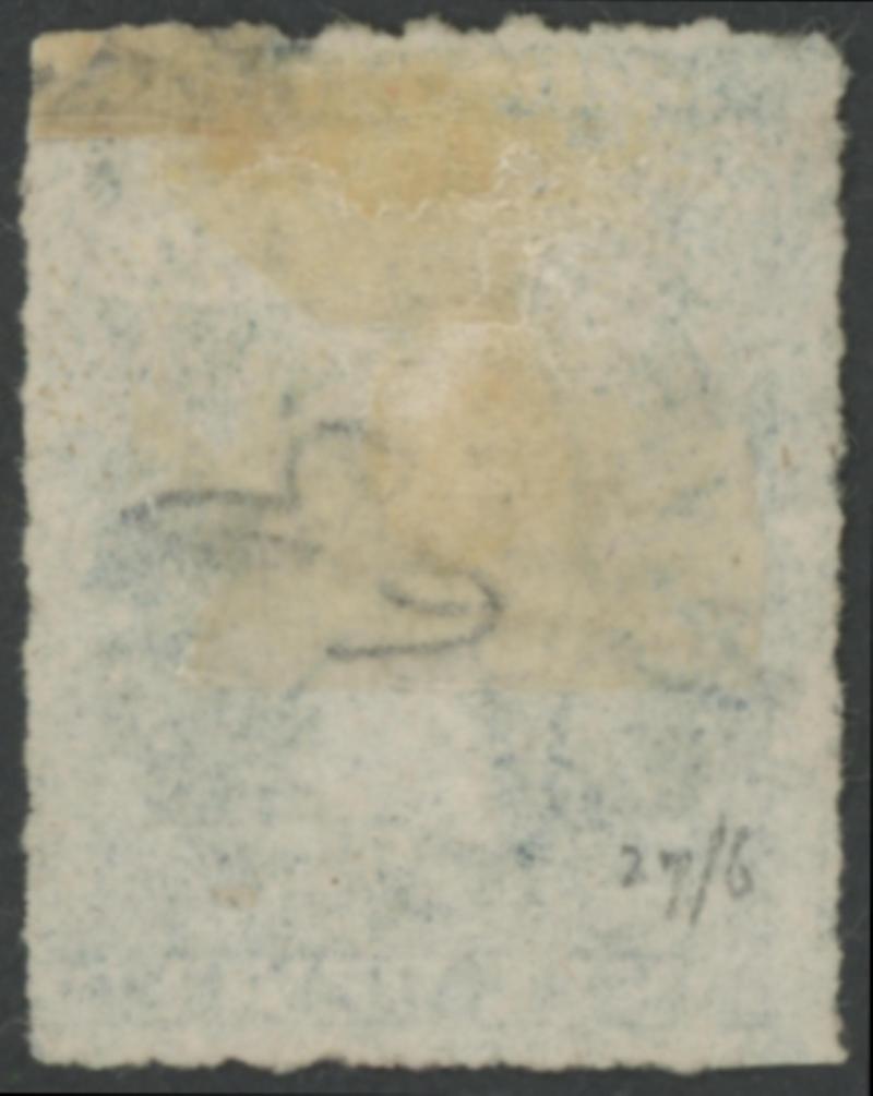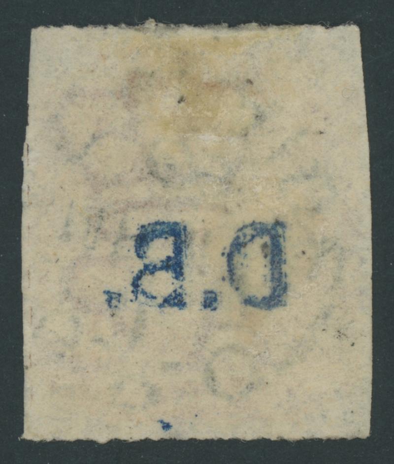 sheet except at top to preserve the design, unused, unpriced unused by Gibbons; Cat £1300 used. Unlisted by Ron Butler & the only recorded example so it should be rated RRRRRR. Ex Baron von Ferrary, Theodore Champion and Philip Croker. Chris Ceremuga