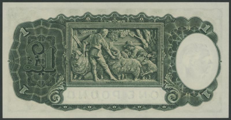 1942 KGVI £1 Armitage/McFarlane Dark Green Main Print R30a serial 'P/82 016738', Uncirculated, Cat $425. (Image1) (Image2)