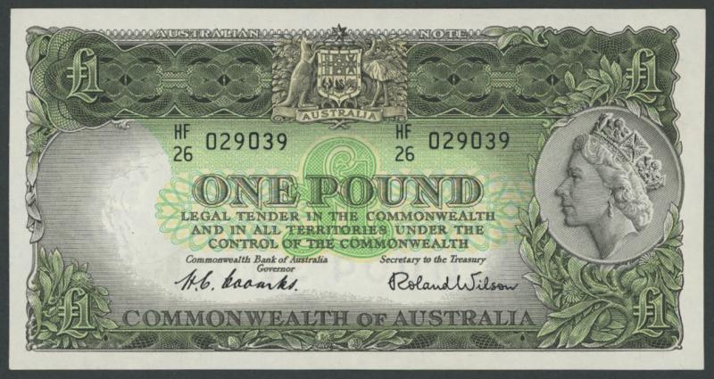 1953 QEII £1 Coombs/Wilson Commonwealth Bank R33 serial 'HF/26 029039', (choice) Uncirculated, Cat $200. (Image1)