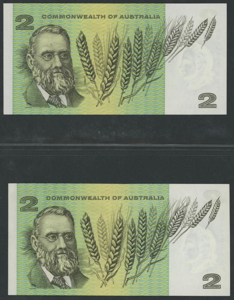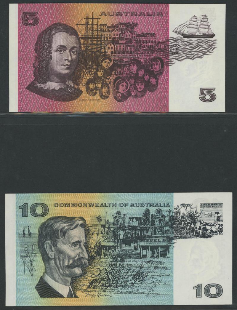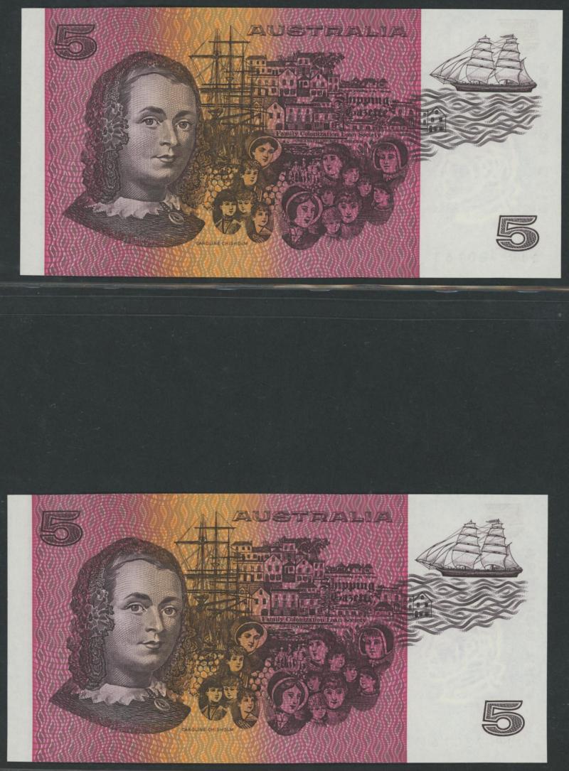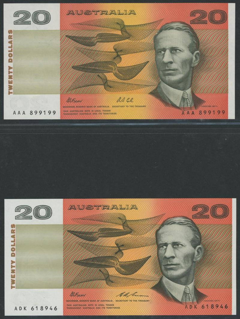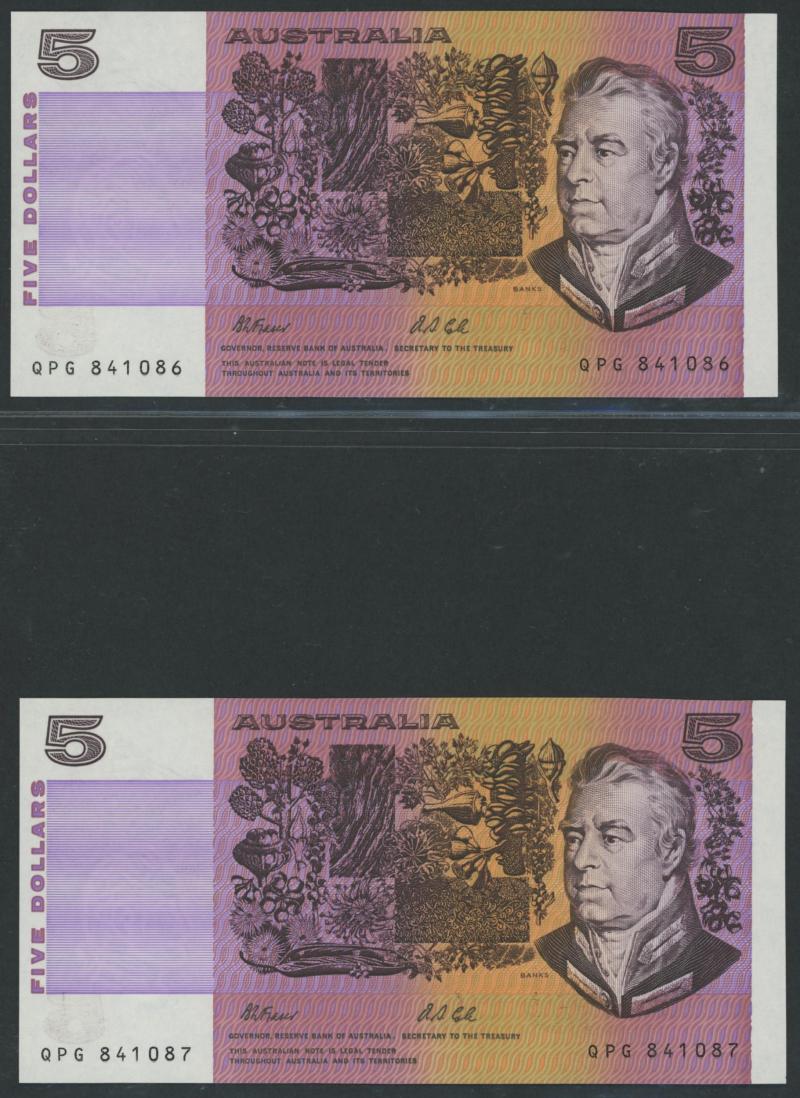 3257 imagePaper note collection in Lighthouse album with slipcase comprising $1 (10) including 1982 Johnston/Stone R78L Last Prefix 'DPS'; $2 (7) including Phillips/Wheeler 1972 R84 'COMMONWEALTH' x2, 1974 R85 'AUSTRALIA' x2; $5 (15) including 1967 Coombs/Randall R202, 1974 Phillips/Wheeler 'AUSTRALIA' R205, 1976 Knight/Wheeler R216 Gothic and OCR-B serials; $10 (9) including 1966 Coombs/Wilson R301, 1991 Fraser/Cole R313aL Last Prefix 'MRR' With Plate Letter, R313bL Last Prefix 'MRR' Without Plate Letter; $20 (6) including 1966 Coombs/Wilson R401, 1991 Fraser/Cole R413i Prefix 'AAA' (NPA issue); $50 1985 Johnston/Fraser Gothic Serial R509a, 1993 Fraser/Evans R515 consecutive run of four; and $100 1992 Fraser/Cole R613; condition variable, virtually all Uncirculated. (53) (Image1) (Image2) (Image3) (Image4) (Image5) (Image6) (Image7) (Image8) (Image9) (Image10) (Image11) (Image12) (Image13) (Image14) (Image15) (Image16) (Image17) (Image18) (Image19) (Image20) (Image21) (Image22) (Image23) (Image24) (Image25) (Image26) (Image27) (Image28) (Image29) (Image30) (Image31) (Image32) (Image33) (Image34) (Image35) (Image36) (Image37) (Image38) (Image39) (Image40) (Image41) (Image42) (Image43) (Image44) (Image45) (Image46) (Image47) (Image48) (Image49) (Image50) (Image51) (Image52) (Image53) (Image54) (Image55) (Image56)