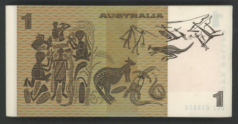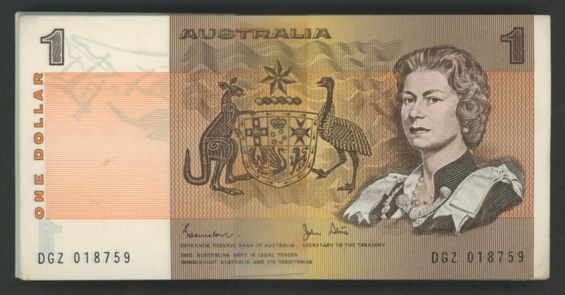 1982 $1 Johnston/Stone R78 wrapped consecutive run of 100, serials 'DGZ 018759'-'858' includes RADAR '018810', some notes with aged