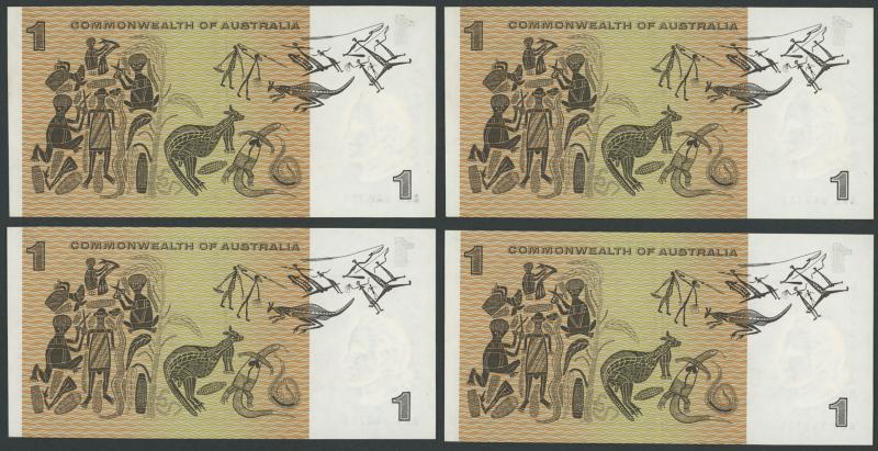1966 $1 Coombs/Wilson R71F consecutive run of four First Prefix serials 'AAA 940701'-'704', Uncirculated, Cat $6000+. (Image1) (Image2)