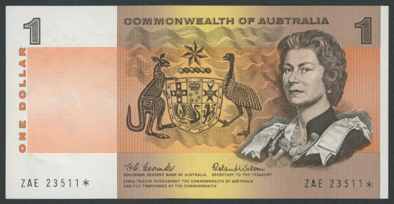 STAR NOTE: 1966 $1 Coombs/Wilson R71S Star Replacement serial 'ZAE 23511 *', Uncirculated, Cat $4750. (Image1) (Image2)