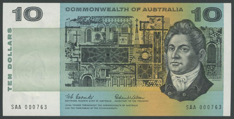 1966 $10 Coombs/Wilson R301F First Prefix serial 'SAA 000763', Uncirculated, Cat $1100. (Image1) (Image2)