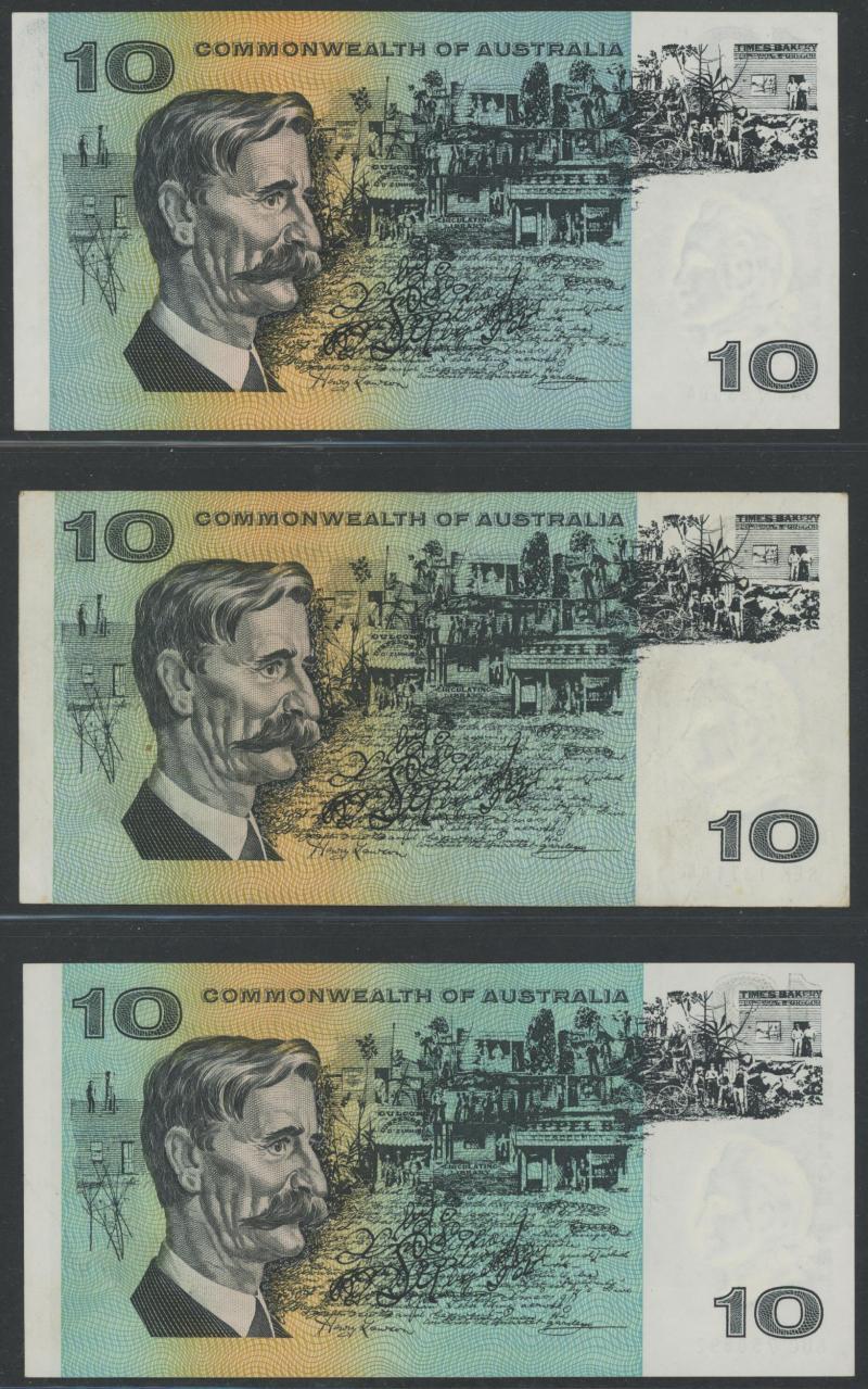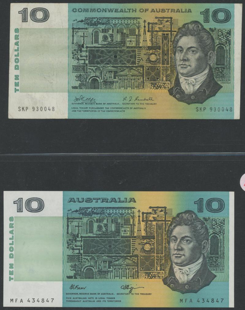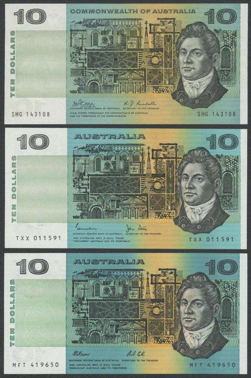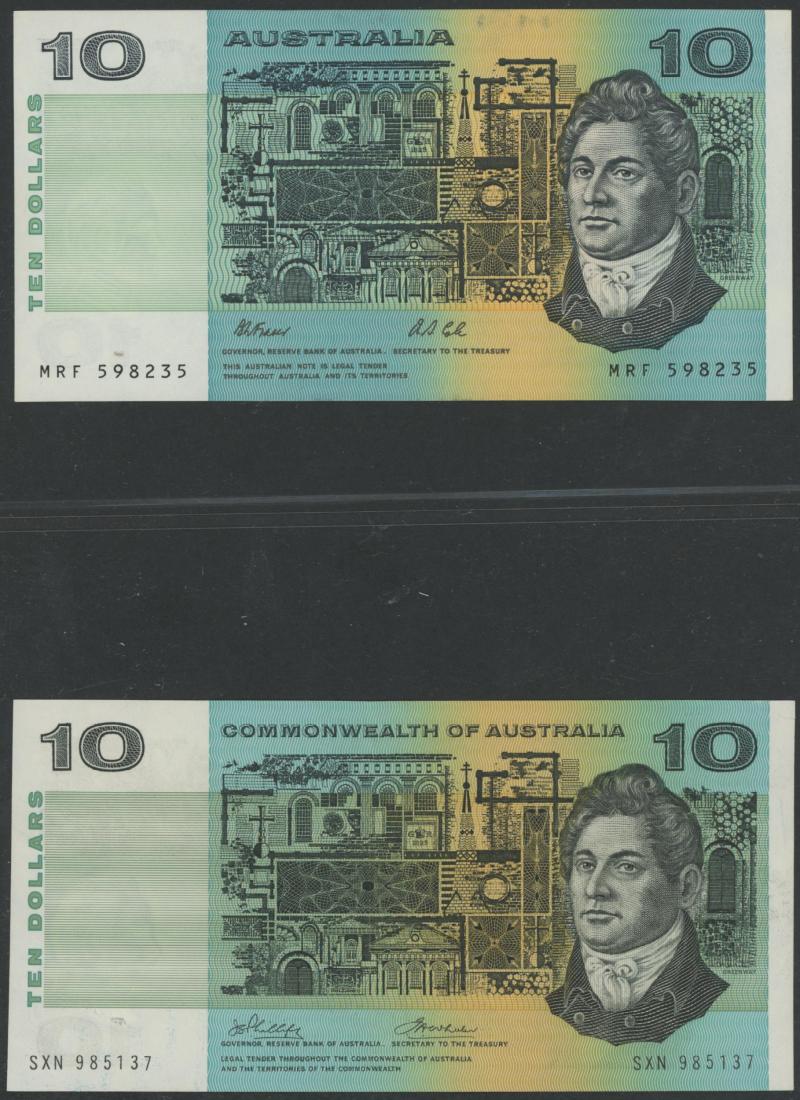 Phillips/Randall R303 x2 including Star Note 'ZSG 25497 *' (poor); 1972 Phillips/Wheeler 'COMMONWEALTH' R304 x5, 1989 Fraser/Higgins R312; 1991 Fraser/Cole With Plate Letter R313a x4 including Uncirculated pair; condition variable, mostly circulated.