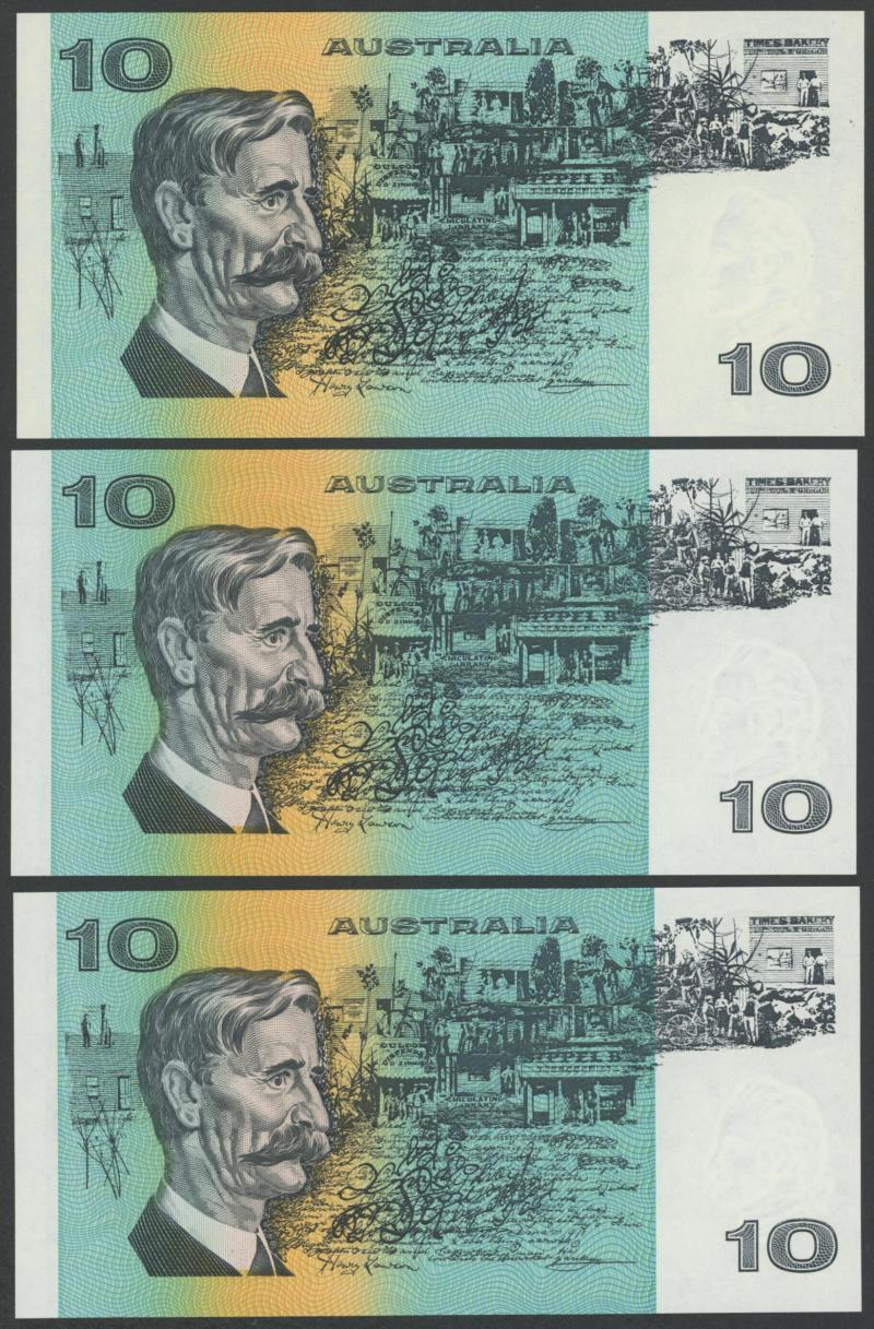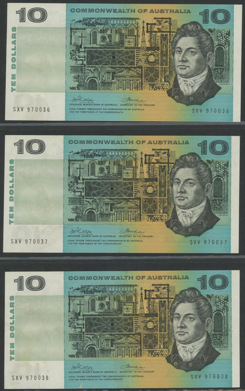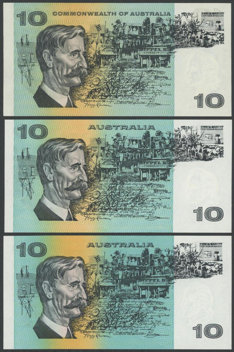 Phillips/Randall R303 x2 including Star Note 'ZSG 25497 *' (poor); 1972 Phillips/Wheeler 'COMMONWEALTH' R304 x5, 1989 Fraser/Higgins R312; 1991 Fraser/Cole With Plate Letter R313a x4 including Uncirculated pair; condition variable, mostly circulated.