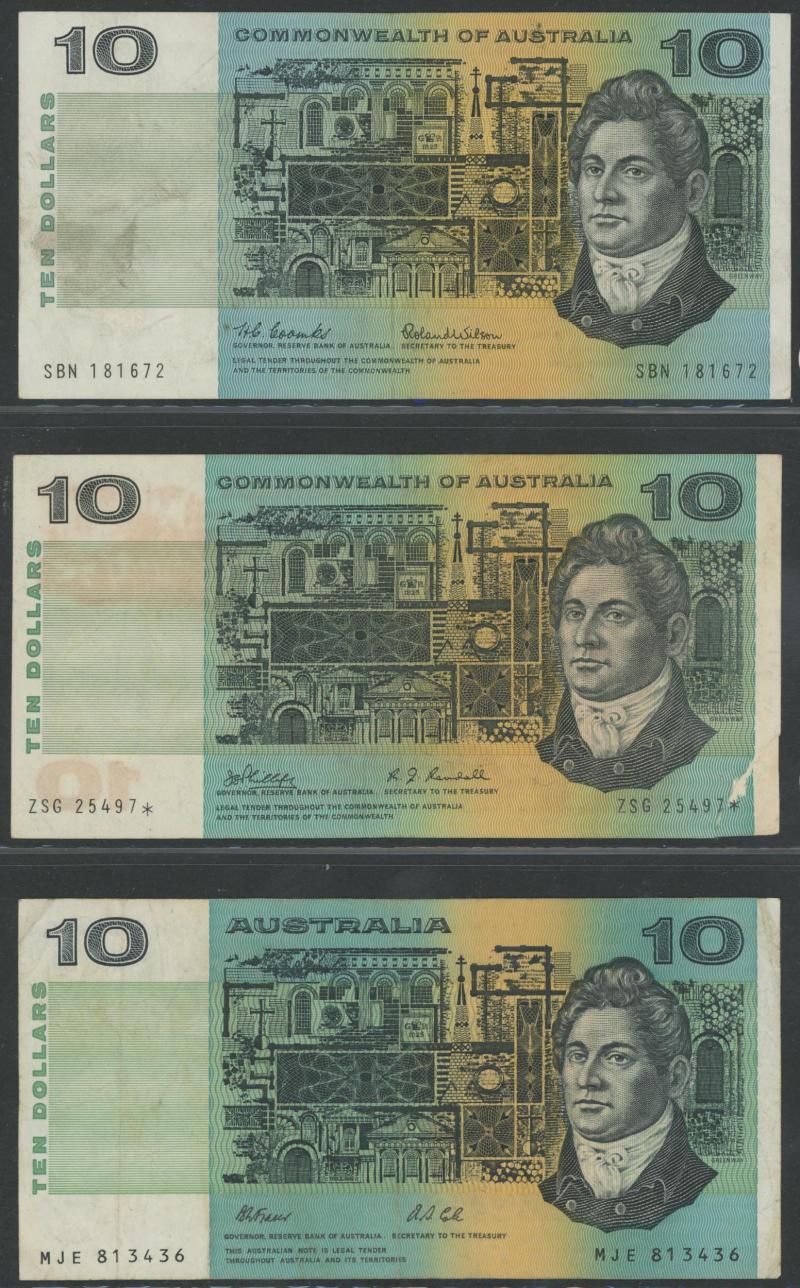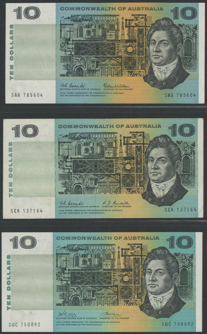 1966-1991 $10 paper collection including 1966 Coombs/Wilson R301F x2 including First Prefix 'SAA'; 1967 Coombs/Randall R302; 1968