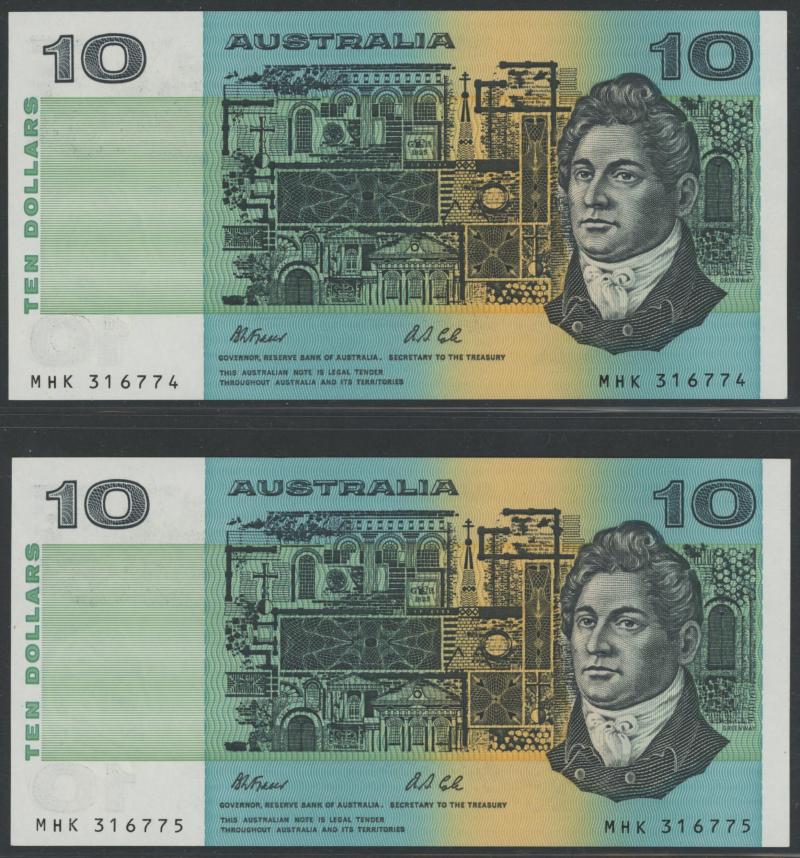 handling aUnc/Unc), 1983 Johston/Stone R308, 1985 Johnston/Fraser R309, 1990 Fraser/Higgins R312 consecutive pair, 1991 Fraser/Cole R313, all Uncirculated unless stated otherwise.
