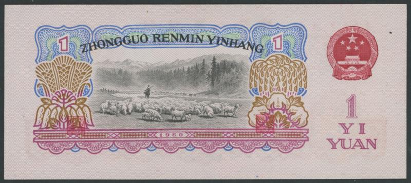 1962 1 Yaun Watermark Large Star Four Small Stars P874c Serial Two Roman Numerals 'IX VII 11113974', obv. Liang Jun driving