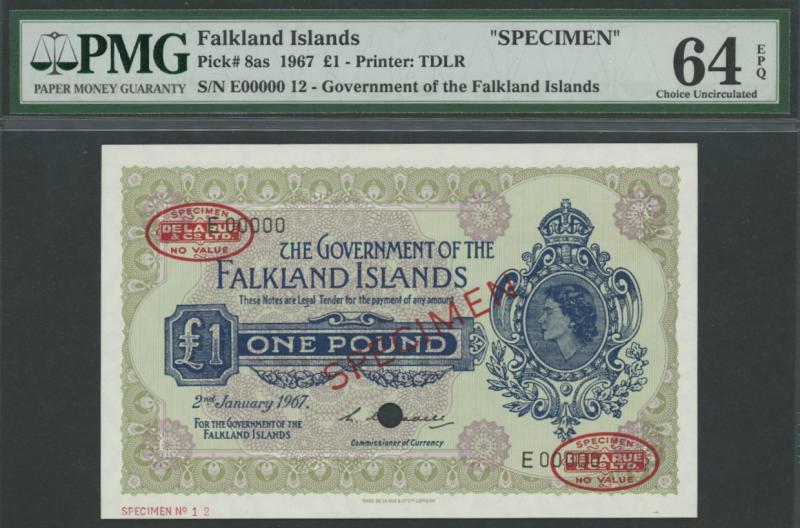 1967 QEII £1 Gleadell De La Rue 'Specimen No.12' Pick 8s serial 'E00000', in PMG holder graded '64 Choice Uncirculated'. (Image1) (Image2)