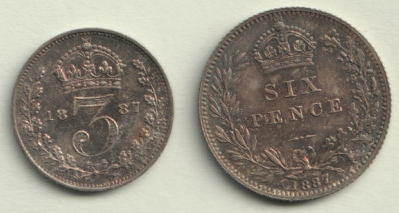 1887 QV Jubilee Head group comprising Maundy 3d Spink 3934, 6d S3929, Florin 2/- S3925, Half-Crown 2/6d S3924, Double-Florin 4/-