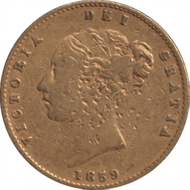 HALF-SOVEREIGN: 1859 QV Young Head Shield reverse, Marsh 433, Spink 3859A, obverse pitting, aFine. (Image1) (Image2)