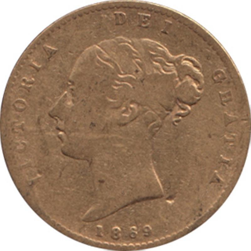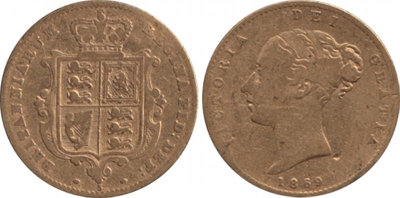 HALF-SOVEREIGN: 1869 QV Young Head Shield reverse, Die '3', Marsh 444, Spink 3860, Fine. (Image1) (Image2)