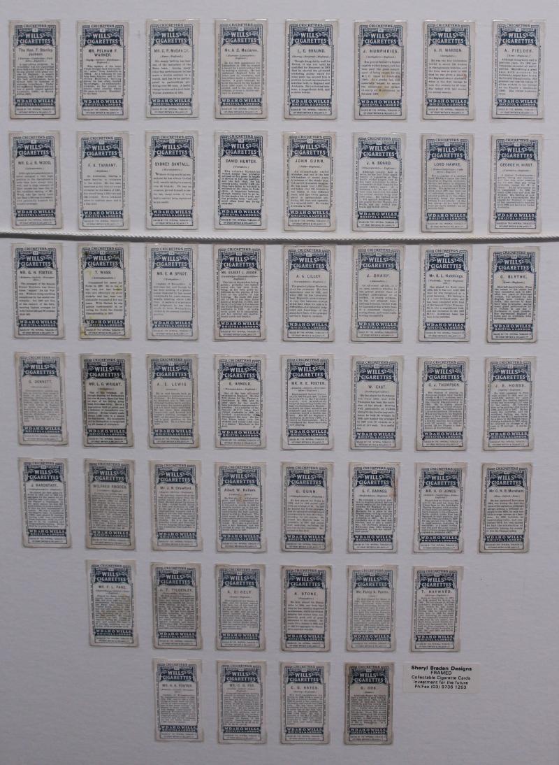 1911 Wills (Australia) 'Prominent Australian & English Cricketers', complete set [59], window mounted, framed & glazed, overall