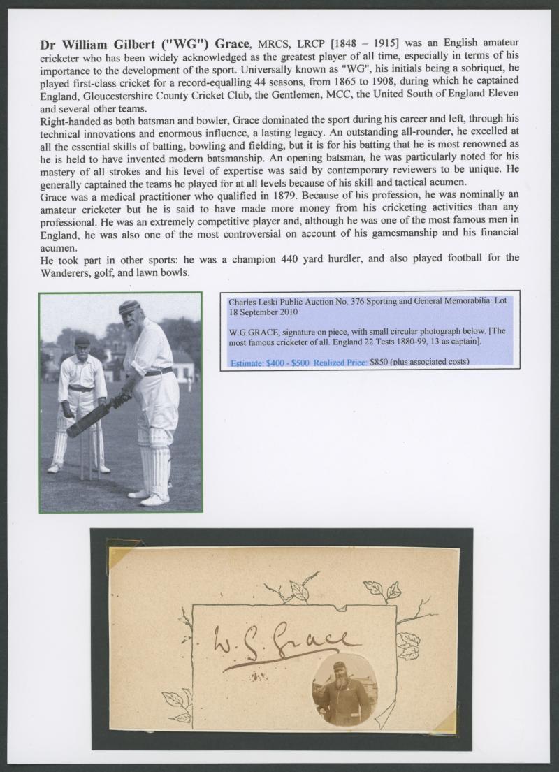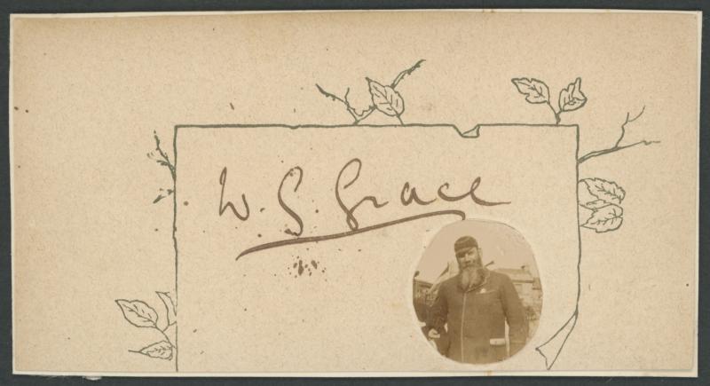 WG GRACE: signature on-piece, with small circular photograph below. [The most famous cricketer of all. England 22 Tests 1880-99, 13