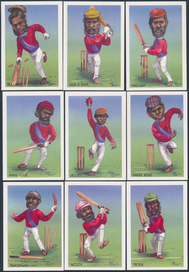 [25]; 1926 Players 'Cricketers caricatures by RIP' [50]; Players 'Cricketers 1938' [50]; 1994 Sanitarium 'Australian Test Cricketers' [20]; 2005 Bradman Museum 'The 1948 Invincibles badges' [17] on card signed by Bill Brown, mainly Fair/Fine.