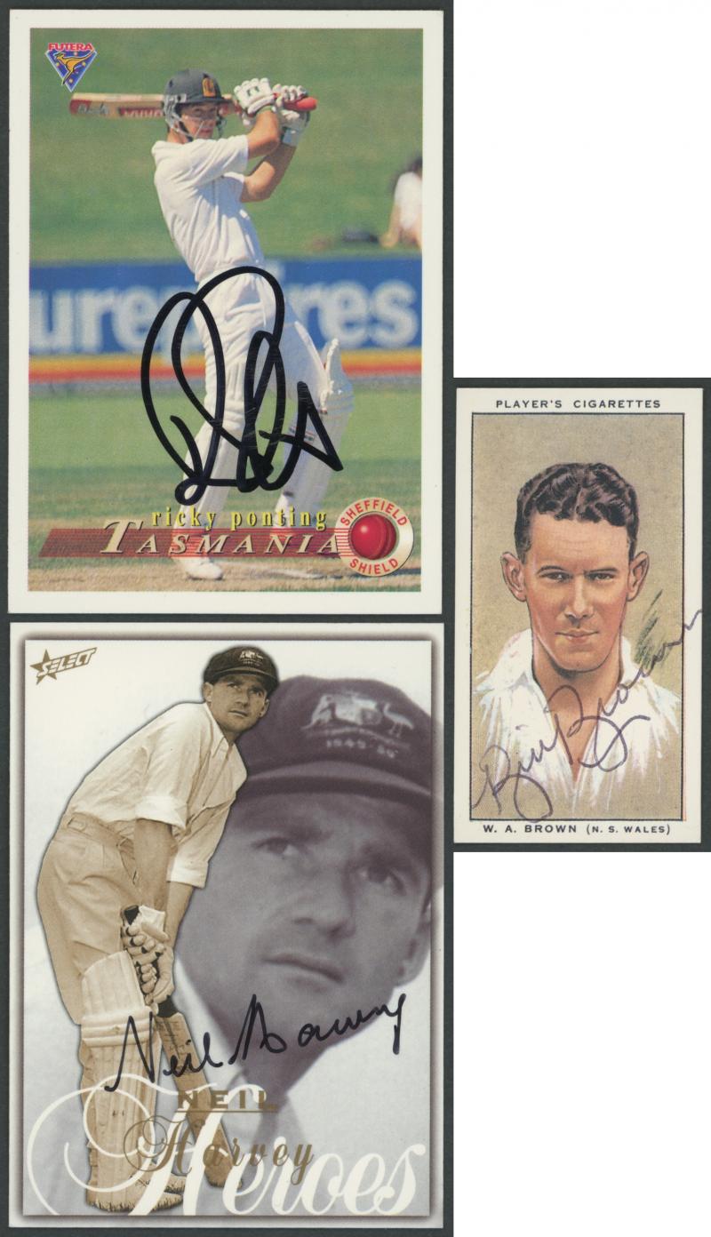 Signed cards 1948-2008 signed cricket cards including Arthur Morris, Bill Brown, Alan Davidson, David Boon, Ricky Ponting, Alec