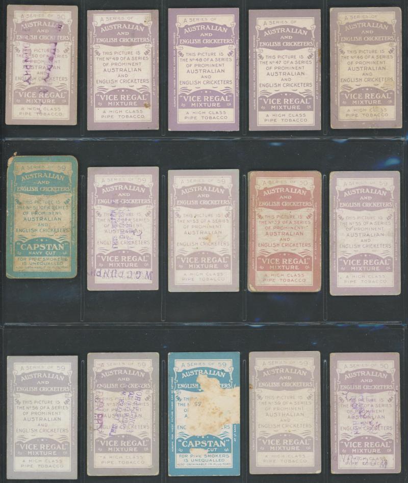Collection 1911-48 including 1911 Wills 'Prominent Australian & English Cricketers' 1-50 [50]; 1925 Morris 'Australian Cricketers'