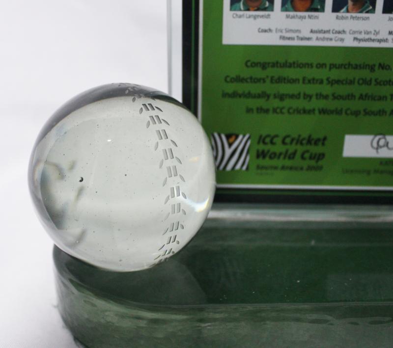 JACK HOBBS: Autographed postcard affixed to cricket bat, mounted in attractive corner display case, overall 39x101cm. (Image1) (Image2)