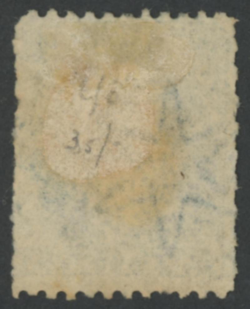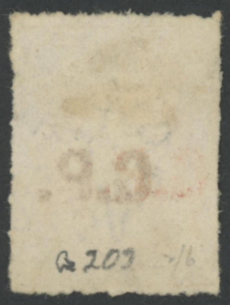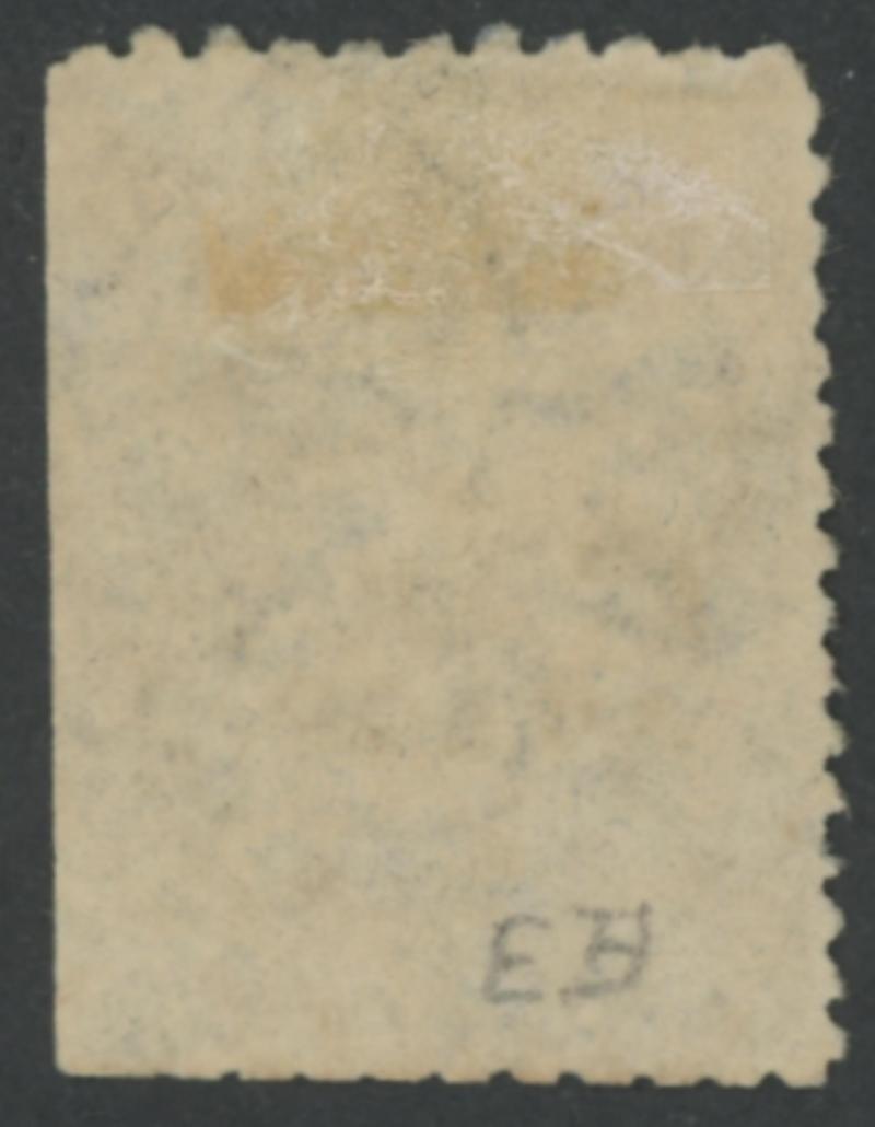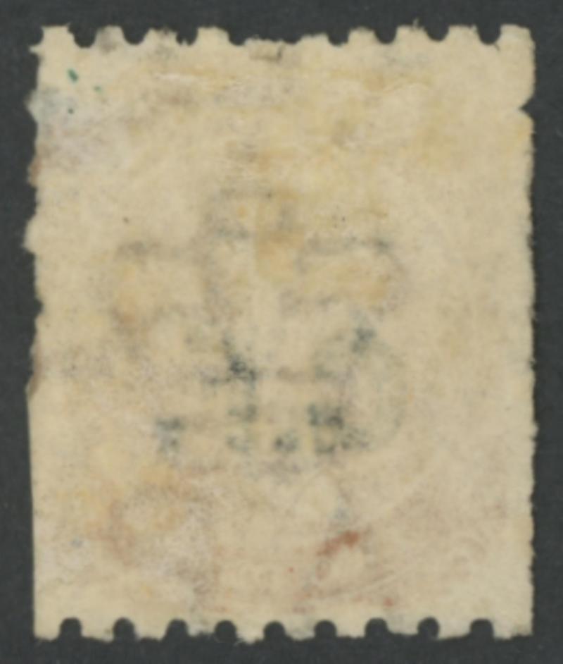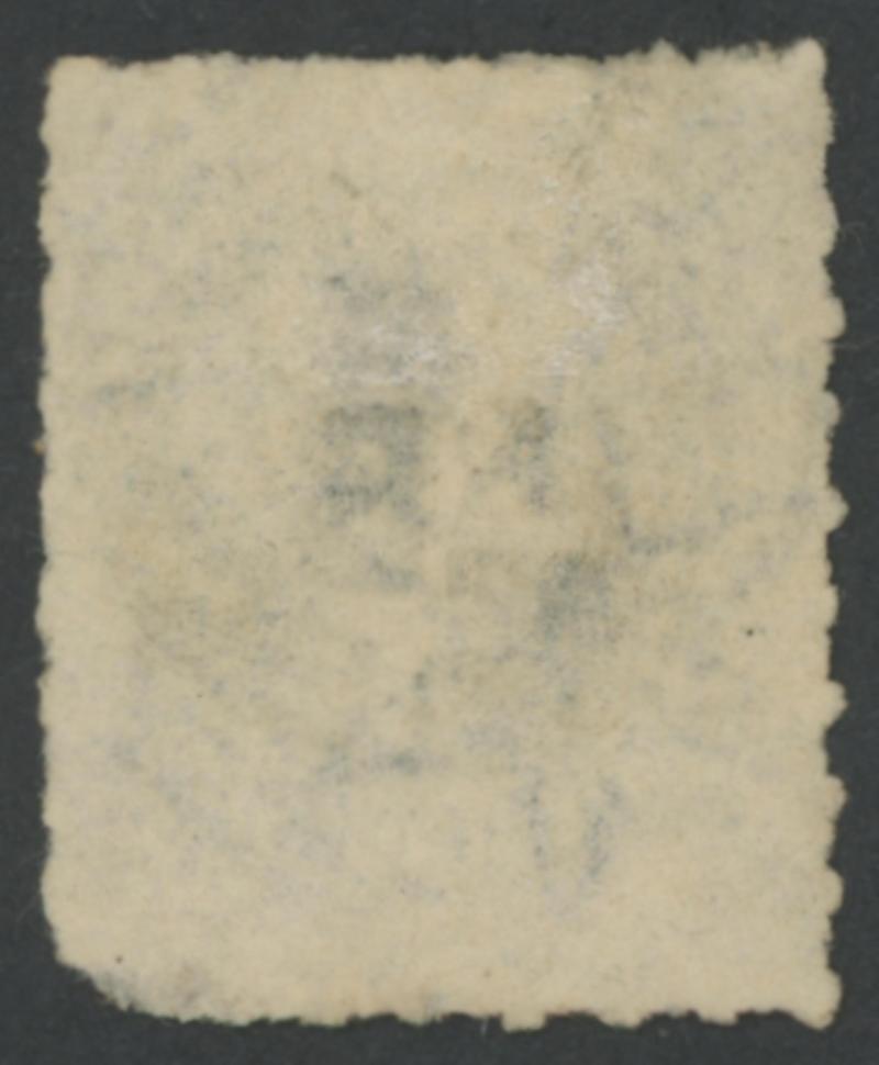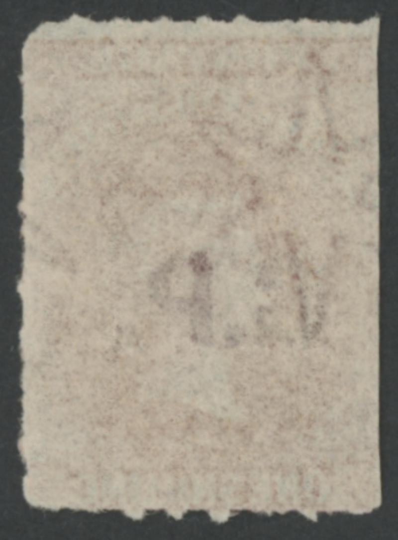 311 F imageBLACK OVERPRINT: 'G.F.' on QV De La Rue Crown/SA Wmk Perf 10xRouletted 2d dull orange SG DO225 with the Watermark Reversed, tiny scissor-cut at upper-left clear of the design, light 'PENOLA' cds with indistinct date, Cat £2250. Rated RRRR: unrecorded unused. Ex Don Pearce: sold for $3355 (Sale 247 Lot 318). Absent from 'Besancon'. [Date range 20.8.1870 to 7.10.1870 only] (Image1) (Image2)