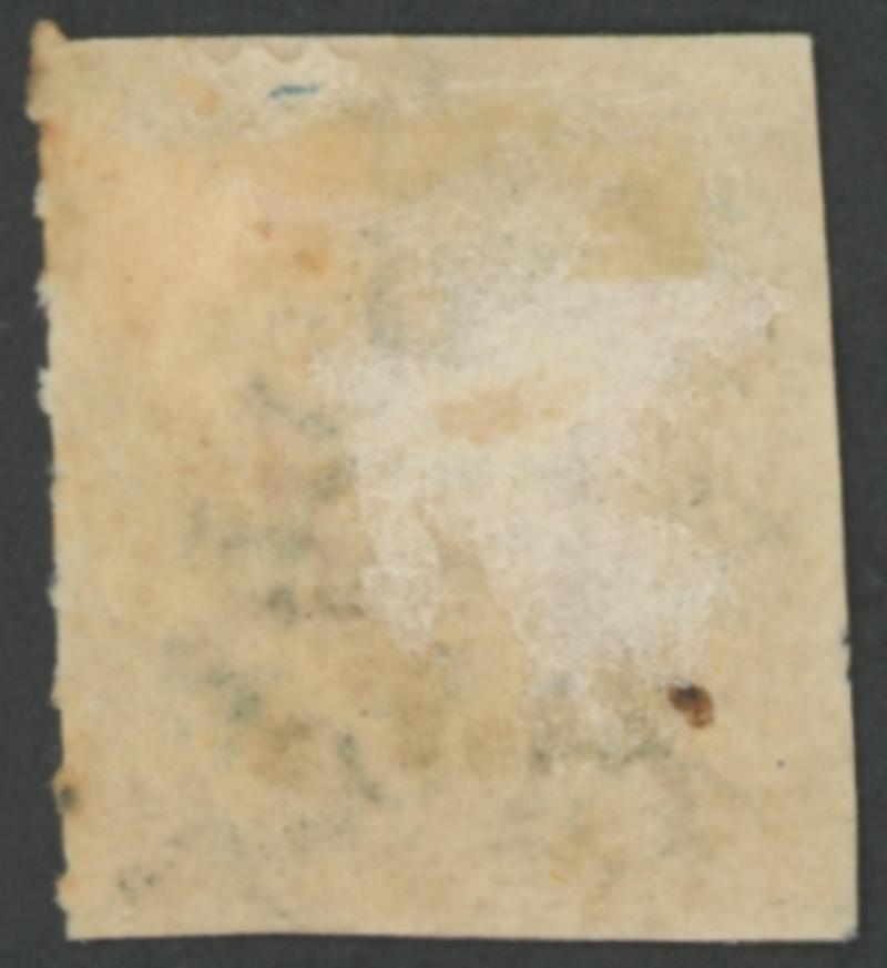 308 F imageBLACK OVERPRINT: 'E.B.' on QV Perkins Bacon Large Star Wmk Perf 11½-12½ 6d Prussian blue SG DO220, irregular perfs at left, GPO cds of 'MR4/74' (the only date recorded by Don Pearce), Cat £300. Rated RRR: unrecorded unused. Ex 'Sir Humphrey' (Brian Farmer): sold for $186 (Sale 118 Lot 341). The similar 'Besancon' and Don Pearce examples sold for SFr485 and $359 (Sale 247 Lot 291) respectively. (Image1) (Image2)