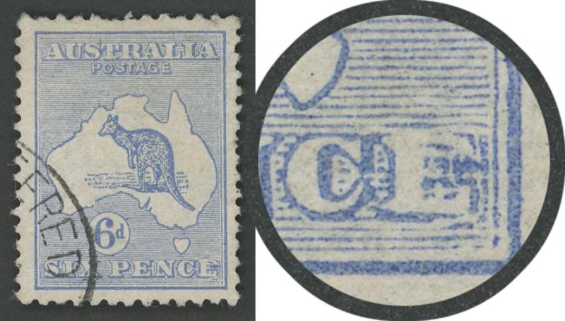 1151 V image6d ultramarine with Mangled Second 'E' of 'PENCE' ACSC 17(1)j (SG 9a), well-centred, ironed-out corner creases at upper-right and several short perfs, oval Perth datestamp well clear of the variety, Cat $1500 (£1000). (Image1) (Image2)