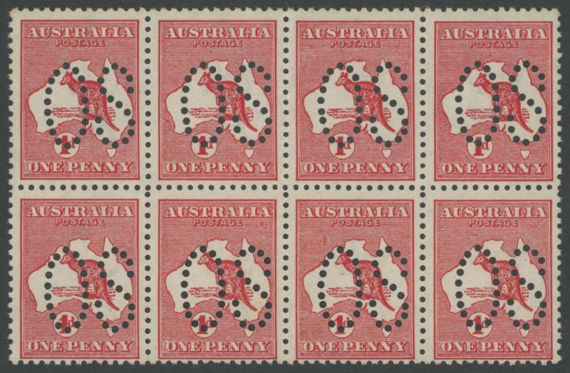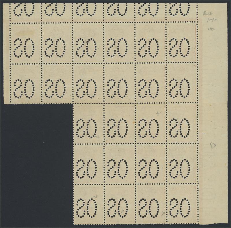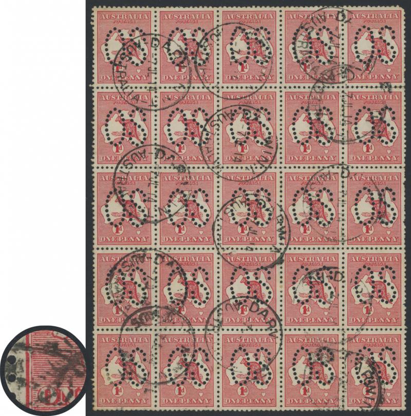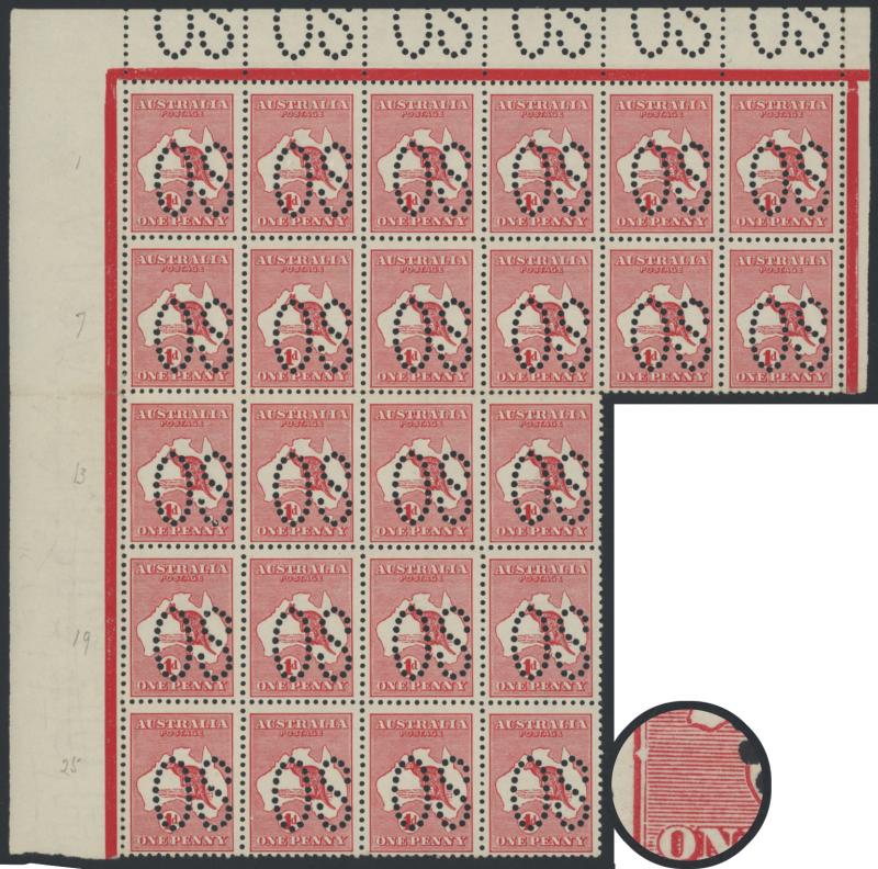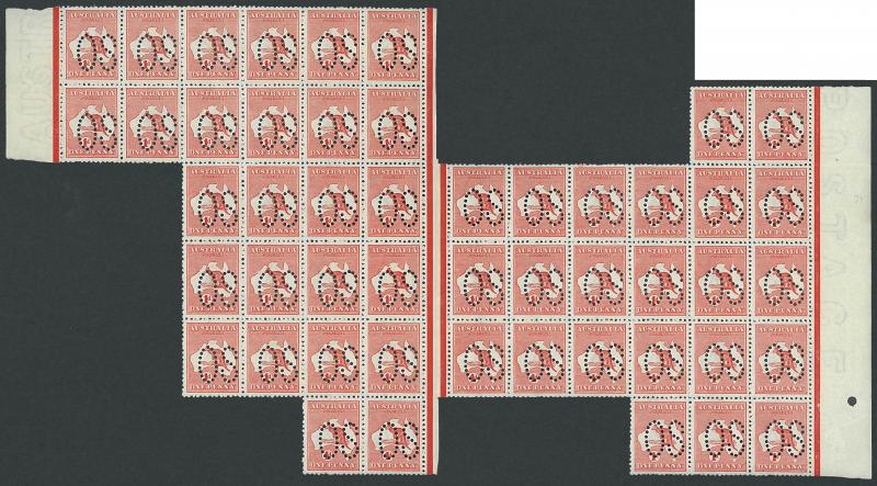 1165 nh image1d red Die I ACSC 2ba (SG O2) Plate C irregular marginal inter-panneau block of 49 including 19 minor constant varieties (list provided), a number of units with partial Offsets on the reverse, four units with small aging marks otherwise fresh unmounted, Cat $4900+ for unmounted singles (£1470+ for mounted singles). Ex David Adams. (Image1) (Image2)