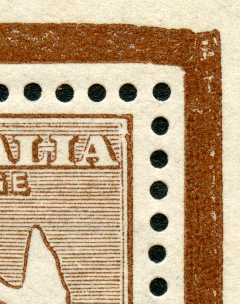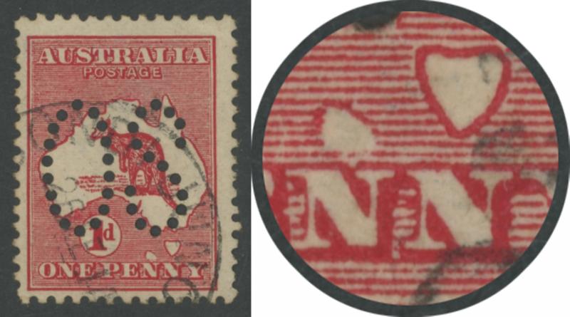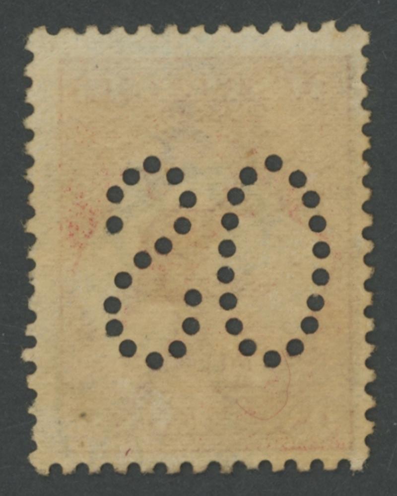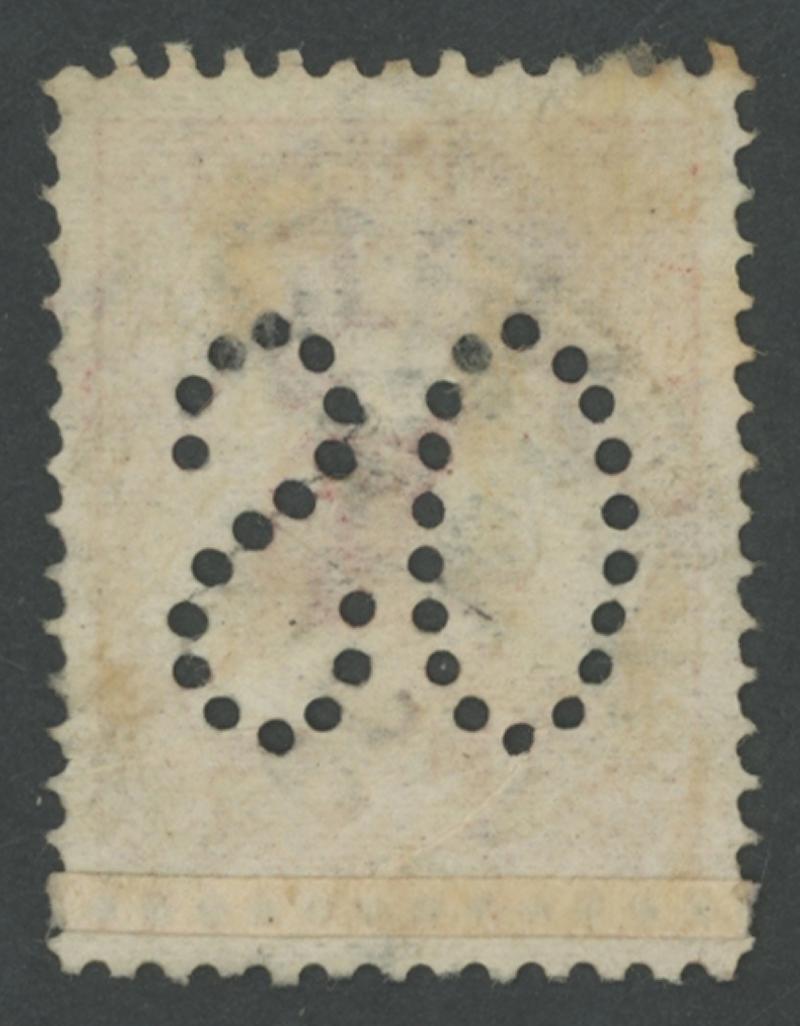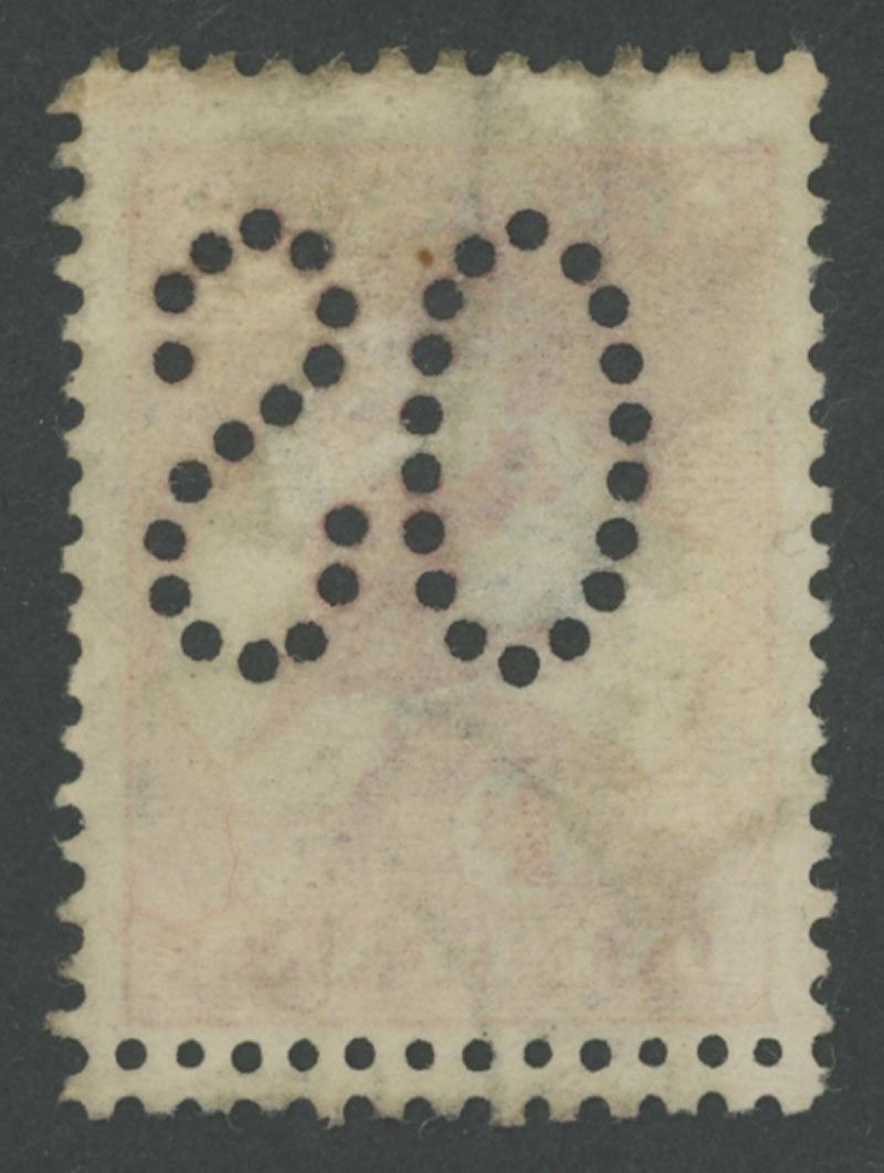 1159 F image1d red Die I ACSC 2ba (SG O2) with Double Perforations at Base ACSC 2b, light WA machine cancel, Cat $650. Ex David Adams. PCNZA Certificate (2025). (Image1) (Image2)