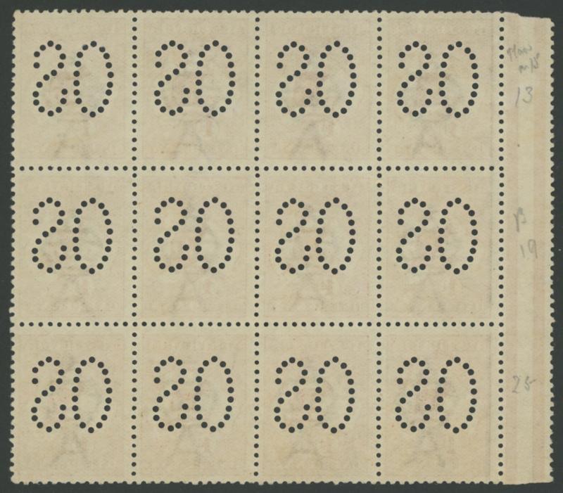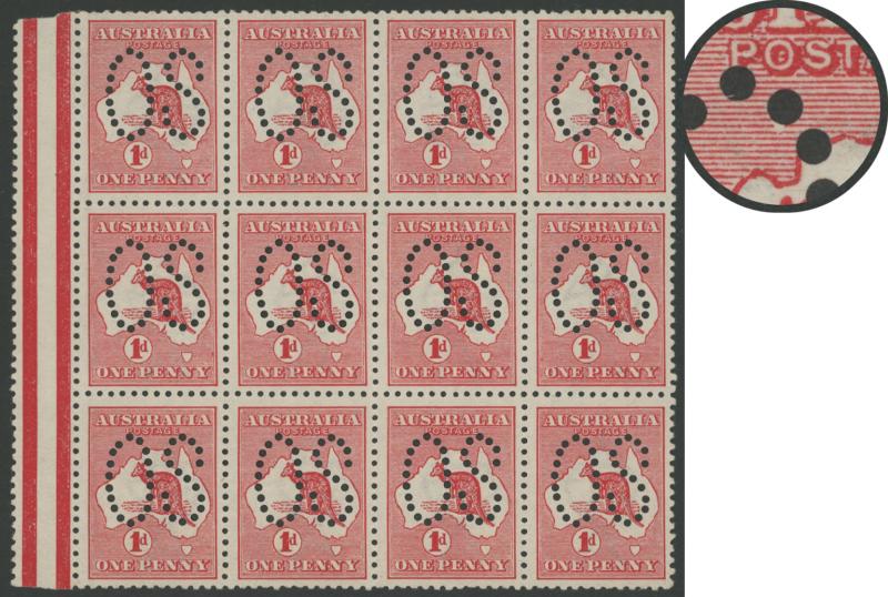 1164 nh image1d red Die I ACSC 2ba (SG O2) Plate B block of 12 (4x3) from the right-hand pane with 'Jubilee' Lines in the gutter margin at left, the second unit from the right in the upper row with White Flaw below 'O' of 'POSTAGE' [Pos R15] ACSC 2(B)k slightly impacted by the 'OS' puncture, well-centred, unmounted, Cat $1200+ for unmounted singles (£360+ for mounted singles). PCNZA Certificate (2025). Ex David Adams. PCNZA Certificate (2025). (Image1) (Image2)