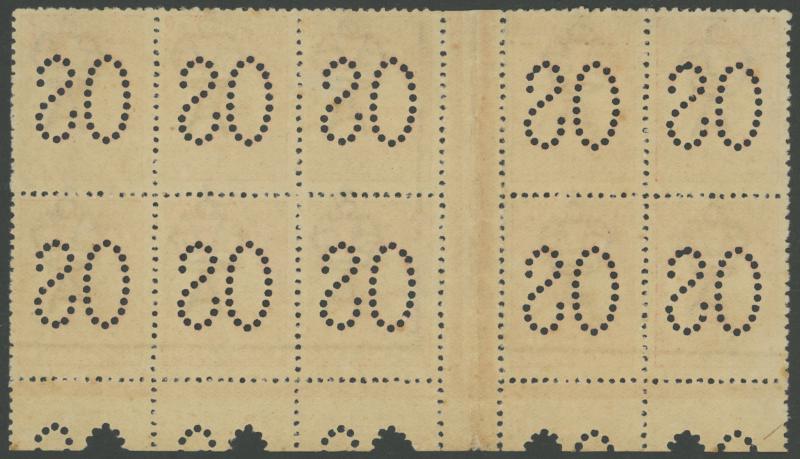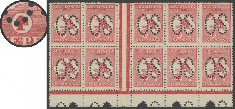 1163 nh image1d red Die I ACSC 2ba (SG O2) Plate B inter-panneau block of 10 (5x2) with 'Jubilee' Lines in the margins and partial 'OS' punctures in the lower margin (the 'O's with paper missing from the centres), the upper-left unit with Break in Upper Right of Value Circle [Pos L53] ACSC 2(B)j slightly impacted by the 'OS' puncture, unmounted, Cat $1000+ for unmounted singles (£300+ for mounted singles). Ex David Adams. PCNZA Certificate (2025). (Image1) (Image2)