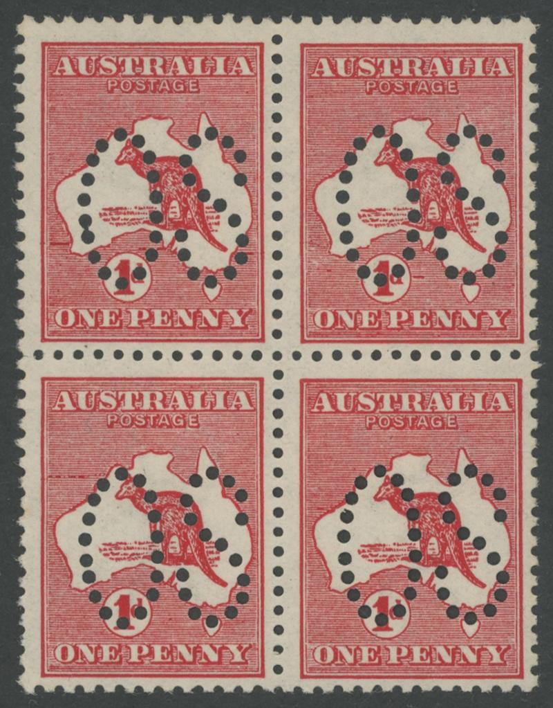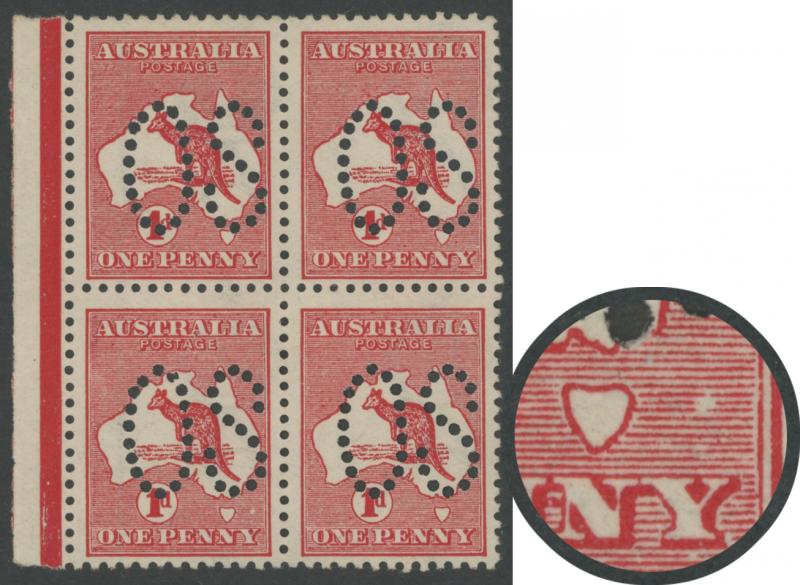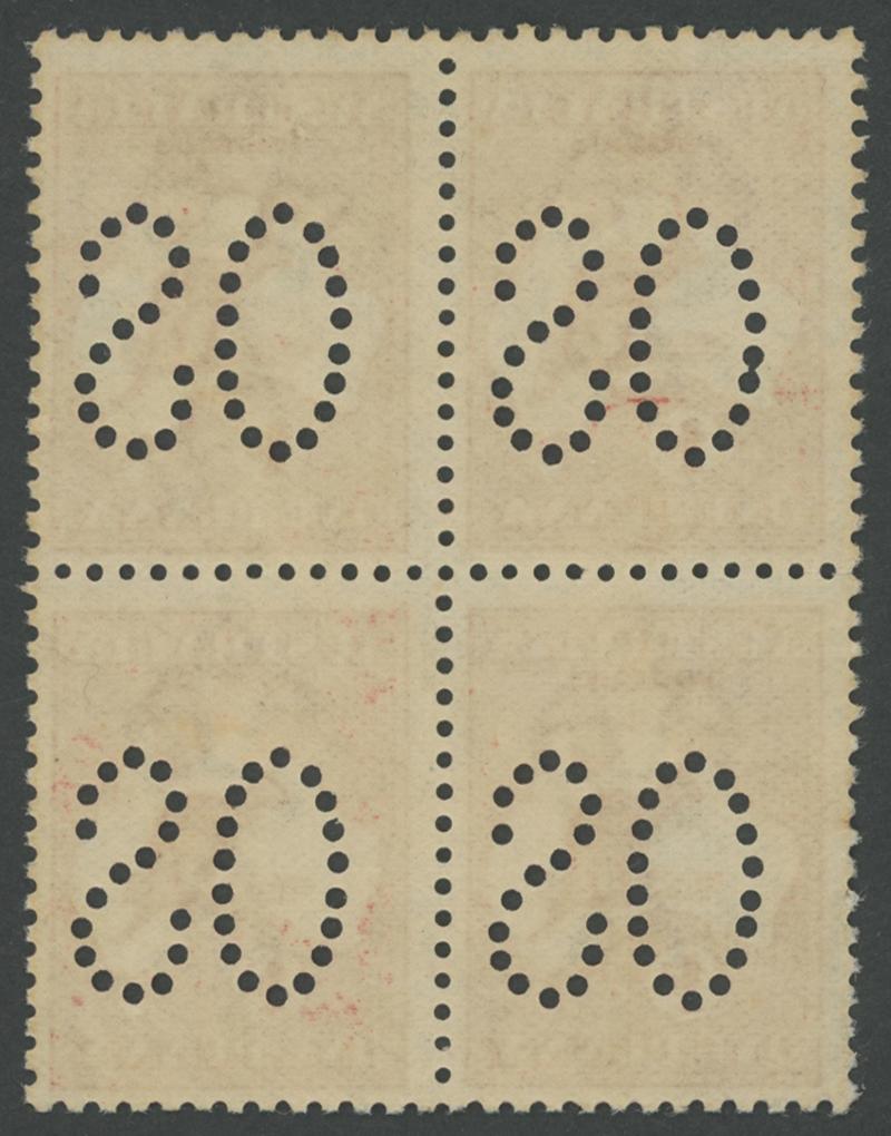 1160 nh image1d red Die I ACSC 2ba (SG O2) Plate C block of 4 plated as [Pos R22-23/28-29], unmounted, Cat $400+ for singles. Ex David Adams. PCNZA Certificate (2025). (Image1) (Image2)
