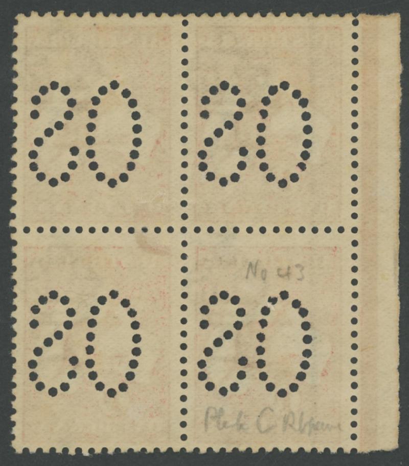 1166 og/nh image1d red Die I ACSC 2ba (SG O2) Plate C block of 24 (6x5 with the lower-right 3x2 block removed) from the left-hand pane with 'Jubilee' Lines in the margins, the second unit from the left in the bottom row with Notch in Left Frame SW of WA [Pos L26] ACSC 2(C)e, one unit with a tiny aging mark on the gum otherwise very fresh, the upper-right unit with a small hinge remainder, the other units including the variety unmounted, Cat $2360+ for the variety mounted, one mounted & 22 unmounted singles (£720+ for mounted singles). PCNZA Certificate (2025). Ex David Adams. PCNZA Certificate (2025). (Image1) (Image2)