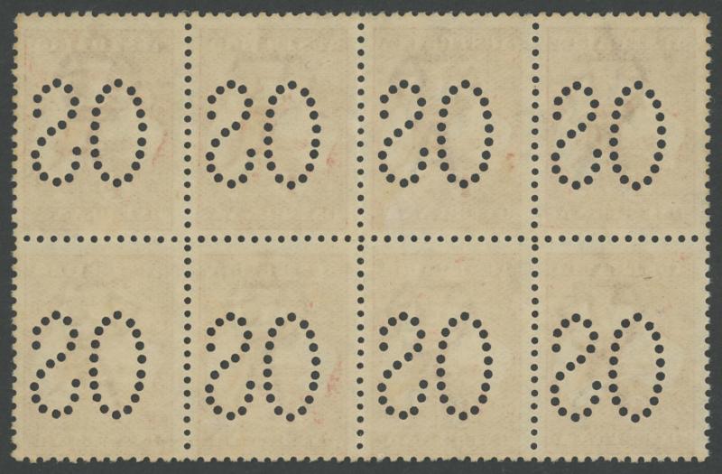 1161 nh image1d red Die I ACSC 2ba (SG O2) Plate C block of 8 (4x2) plated as [Pos R32-35/38-41] but without White Flaw below Victoria [Pos R35], unmounted, Cat $800+ for singles. Ex David Adams. PCNZA Certificate (2025). (Image1) (Image2)