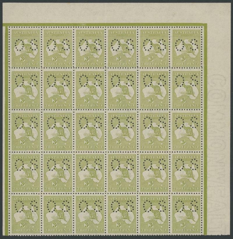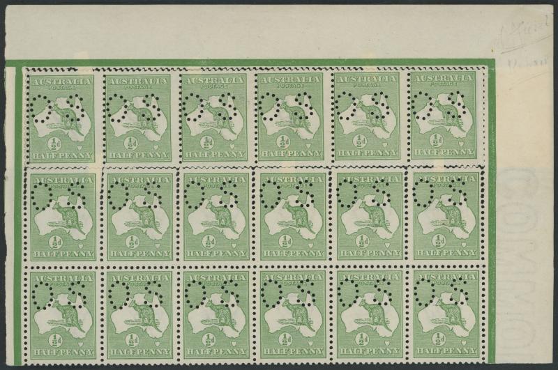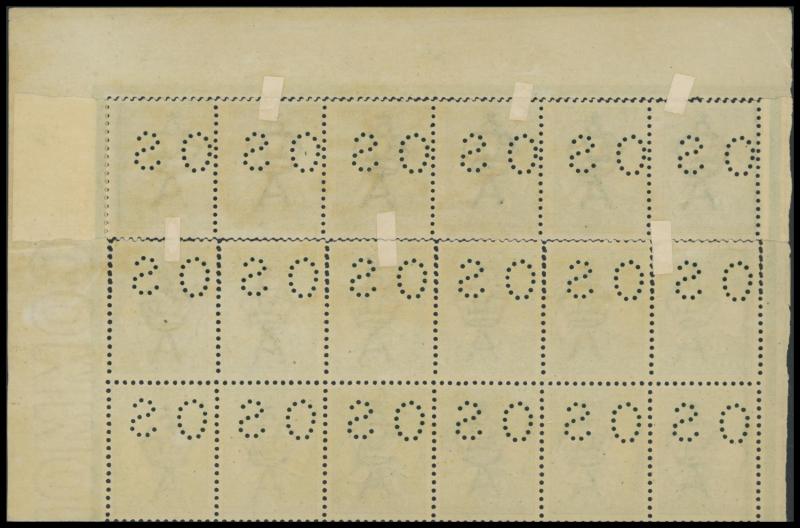 ½d green ACSC 1be (SG O16) block of 18 (6x3) from the top of the right-hand pane with Official Substitution of the Entire First Row