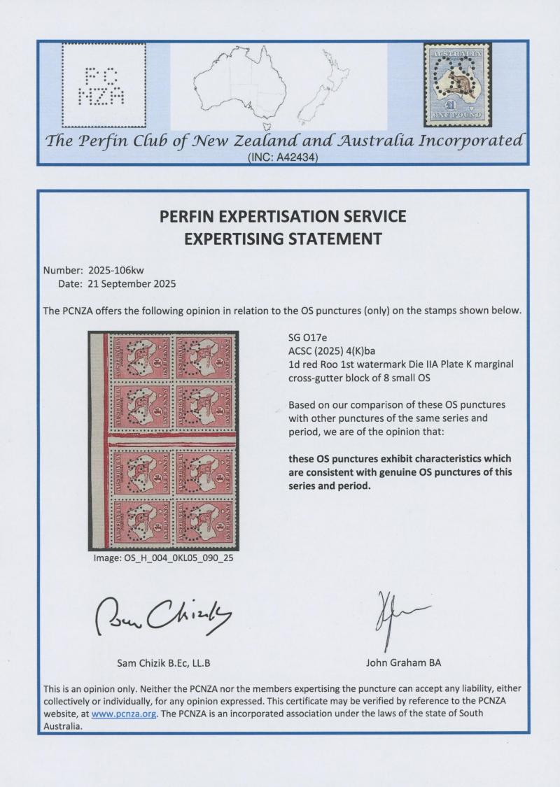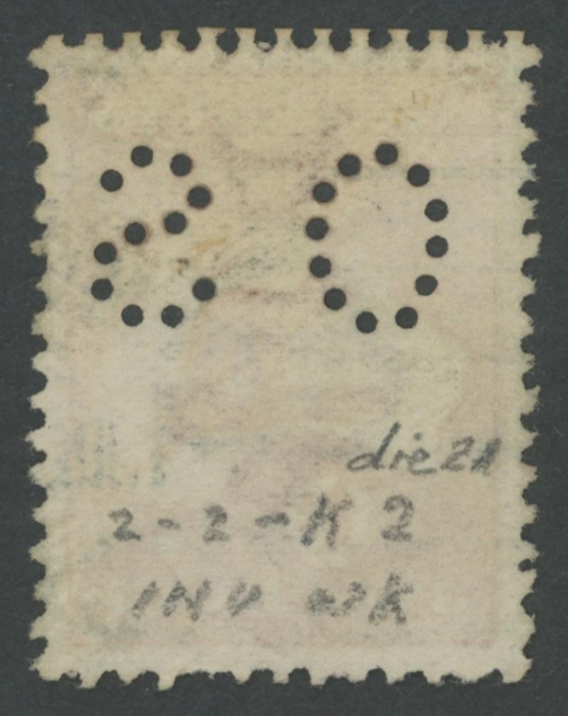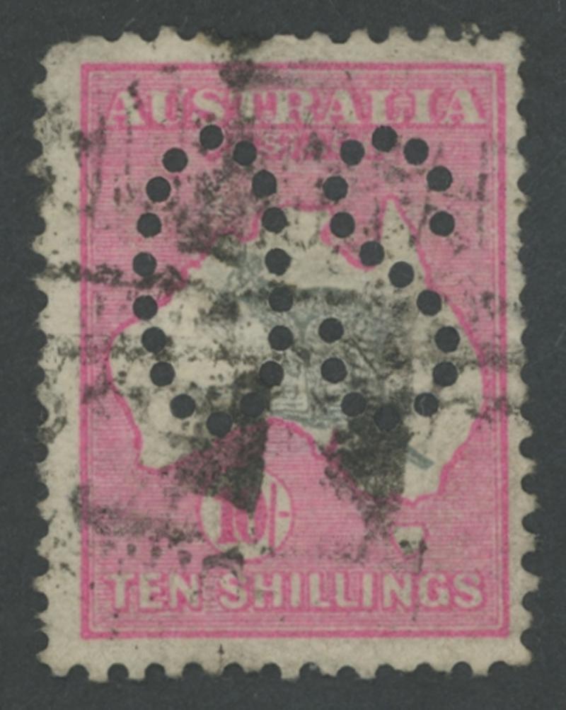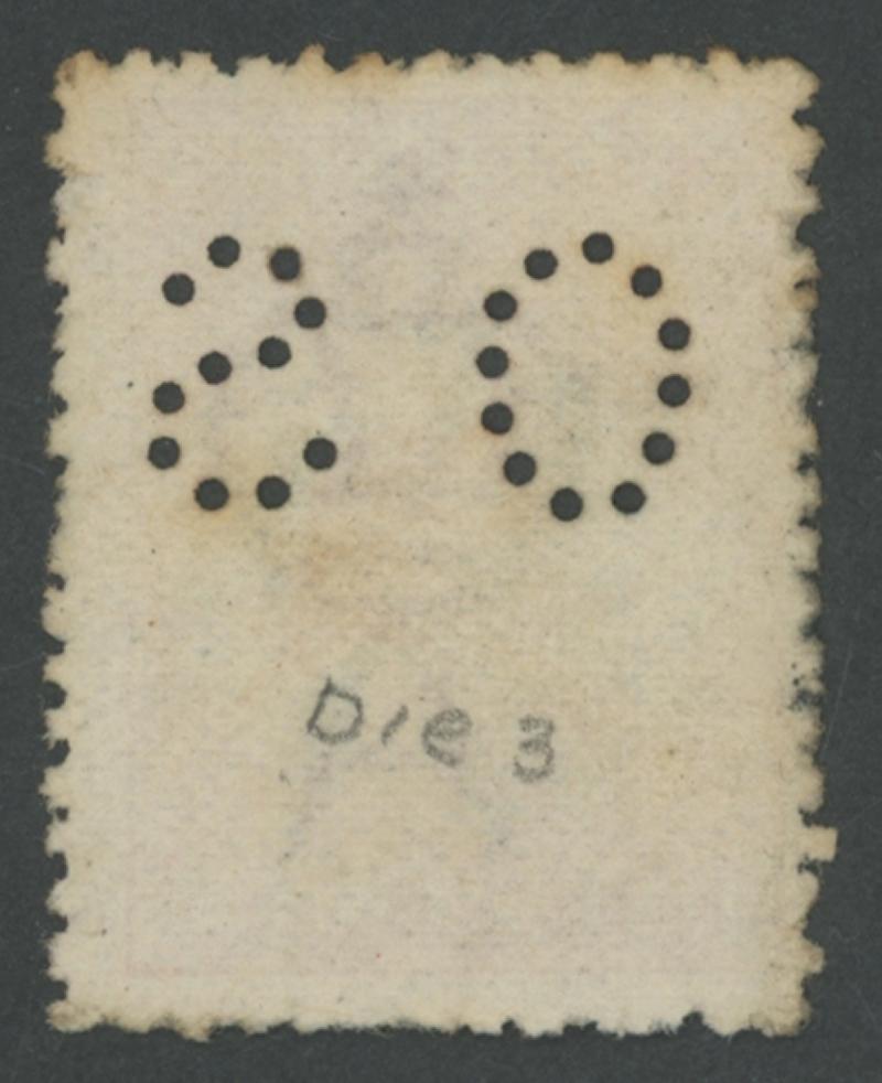 Melbourne machine cancel just clear of the frame break, under-catalogued at $125 plus 50% premium for punctured 'OS'. Ex David Adams. PCNZA Certificate (2025). (Image1) (Image2)