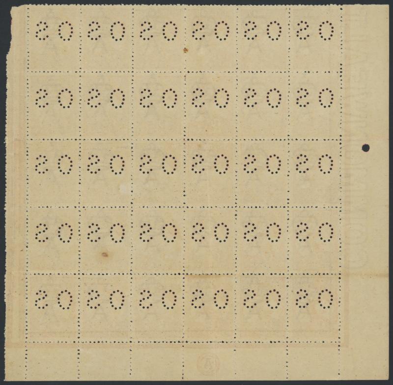 3d olive Die I ACSC 12bc (SG O20) corner block of 30 (6x5) from the upper-right of the sheet, very fresh appearance, characteristic