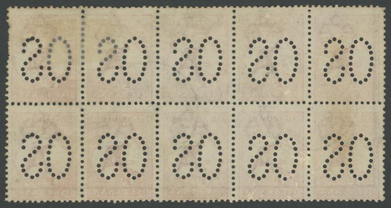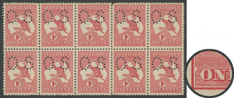 1d red Die II ACSC 3bb (SG O17d) Plate E block of 10 (5x2) the lower right-hand unit with White Flaw on Inner Frame opposite 'ONE'