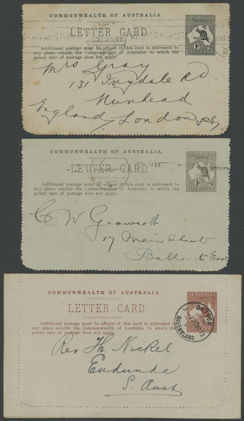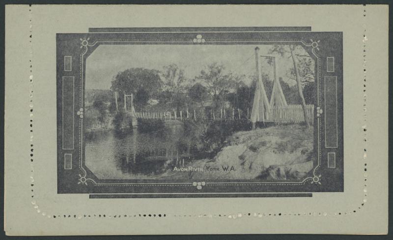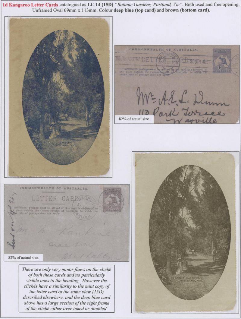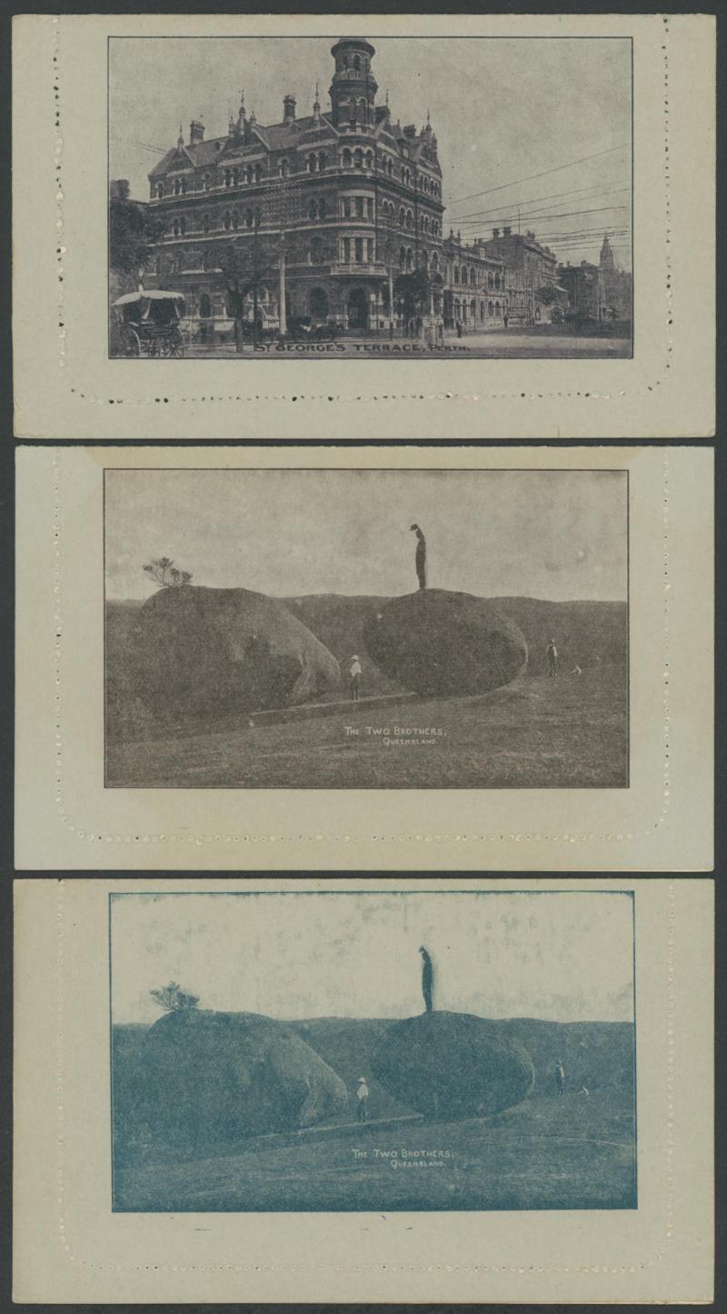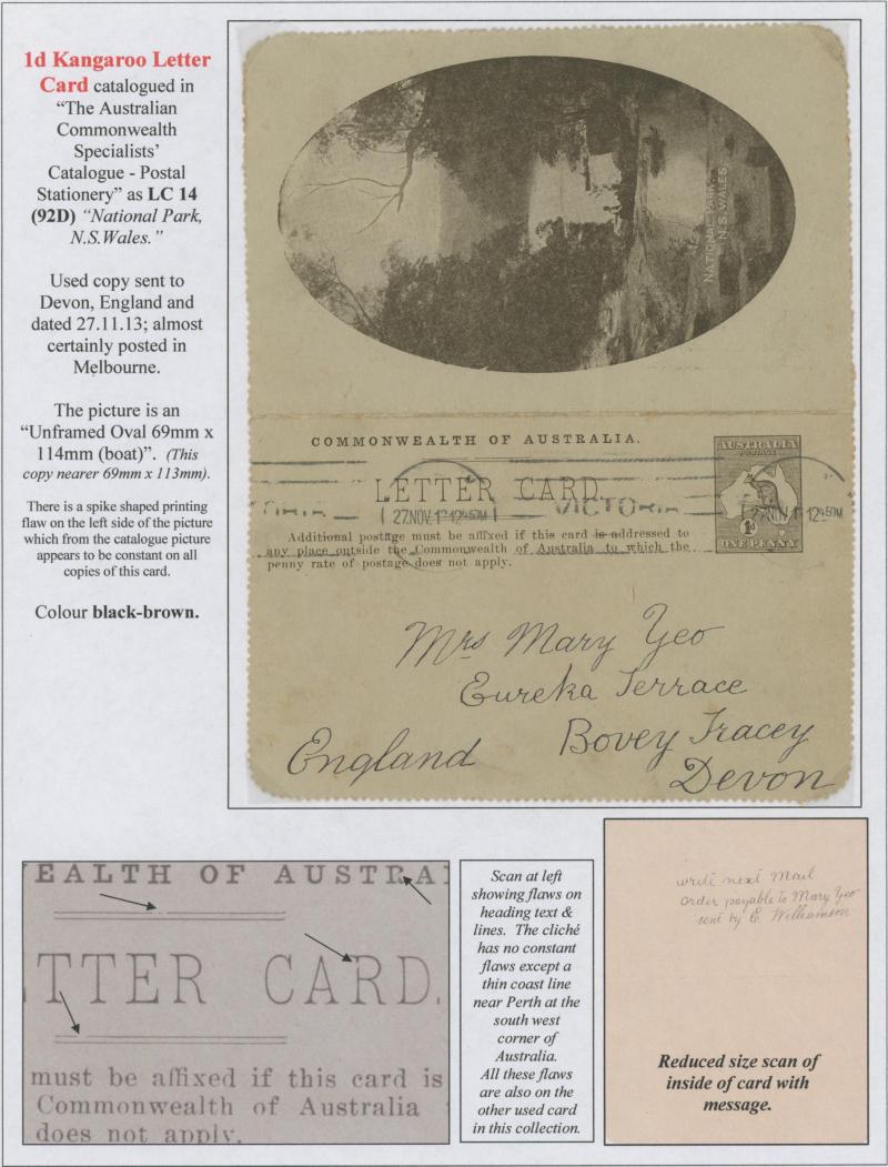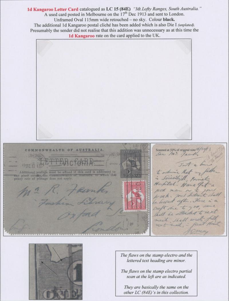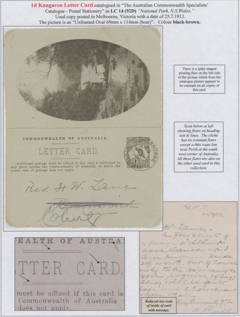1243 PSE imageLETTER CARDS - SCENIC: Kangaroo 1d Original Die ACSC LC14 with pre-printed return address & payment advice form inside for Griffiths Bros, Tea Coffee & Cocoa Merchants, Mebourne comprising rectangular views 'NATIONAL PARK/N.S.WALES', 'THE TWO BROTHERS/QUEENSLAND', BOTANIC GARDENS/PORTLAND, VIC.', 'GOVERNMENT HOUSE/PERTH' & 'ZOOLOGICAL GARDENS/ PERTH W.A.', minor blemishes including gum loss where opened after adhesion, unused, Cat $850+ for normal. It is interesting that a high proportion of Griffiths cards have rectangular views. (5) (Image1) (Image2) (Image3) (Image4) (Image5) (Image6) (Image7) (Image8) (Image9) (Image10) (Image11) (Image12) (Image13)