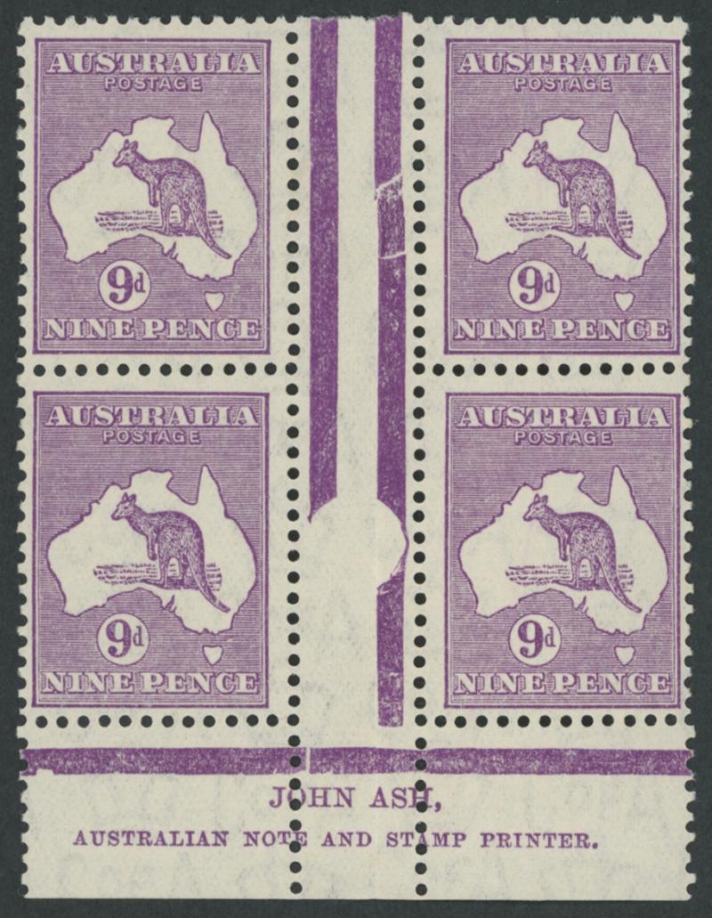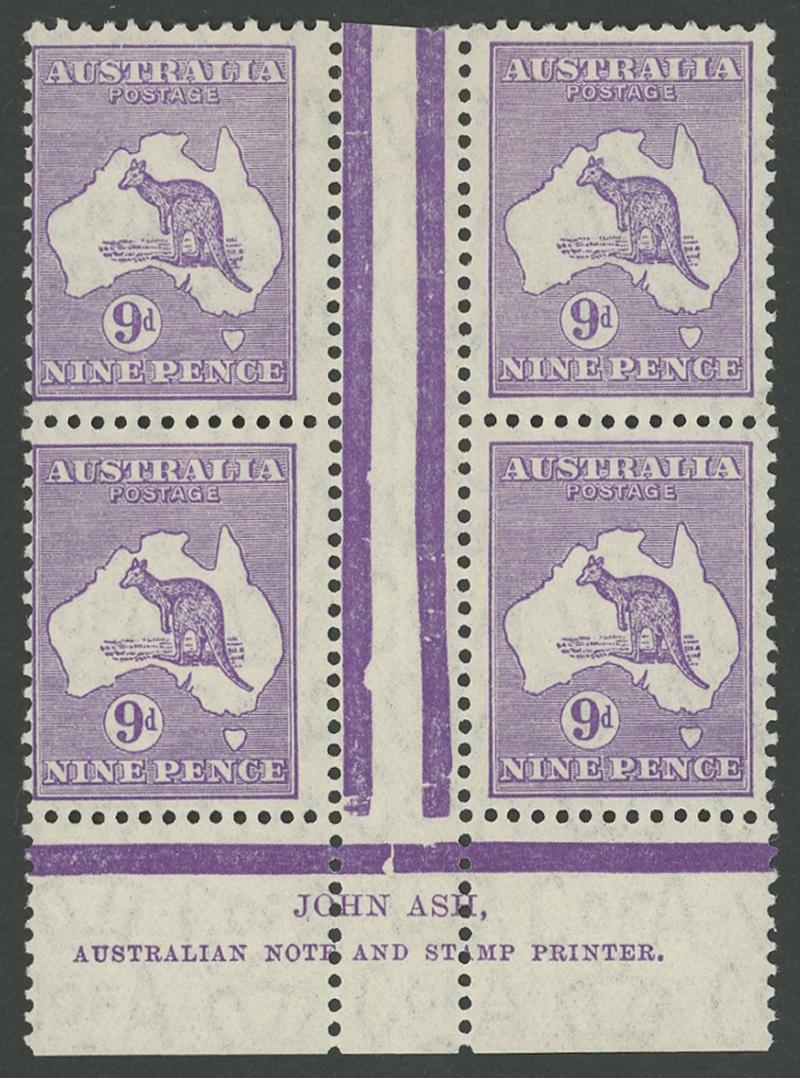 1232 og/nh image9d violet Plate 4 John Ash Imprint block of 4 ACSC 29(4)z, light diagonal crease, the lower units are unmounted, Cat $700. (Image1) (Image2)