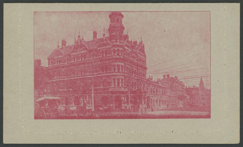 1248 PSE imageLETTER CARDS - SCENIC: Kangaroos 1d Original Die 'ST GEORGE'S TERRACE PERTH' rectangular view ACSC LC14(119E) in rose-red, very fine unused, Cat $250. (Image1) (Image2)