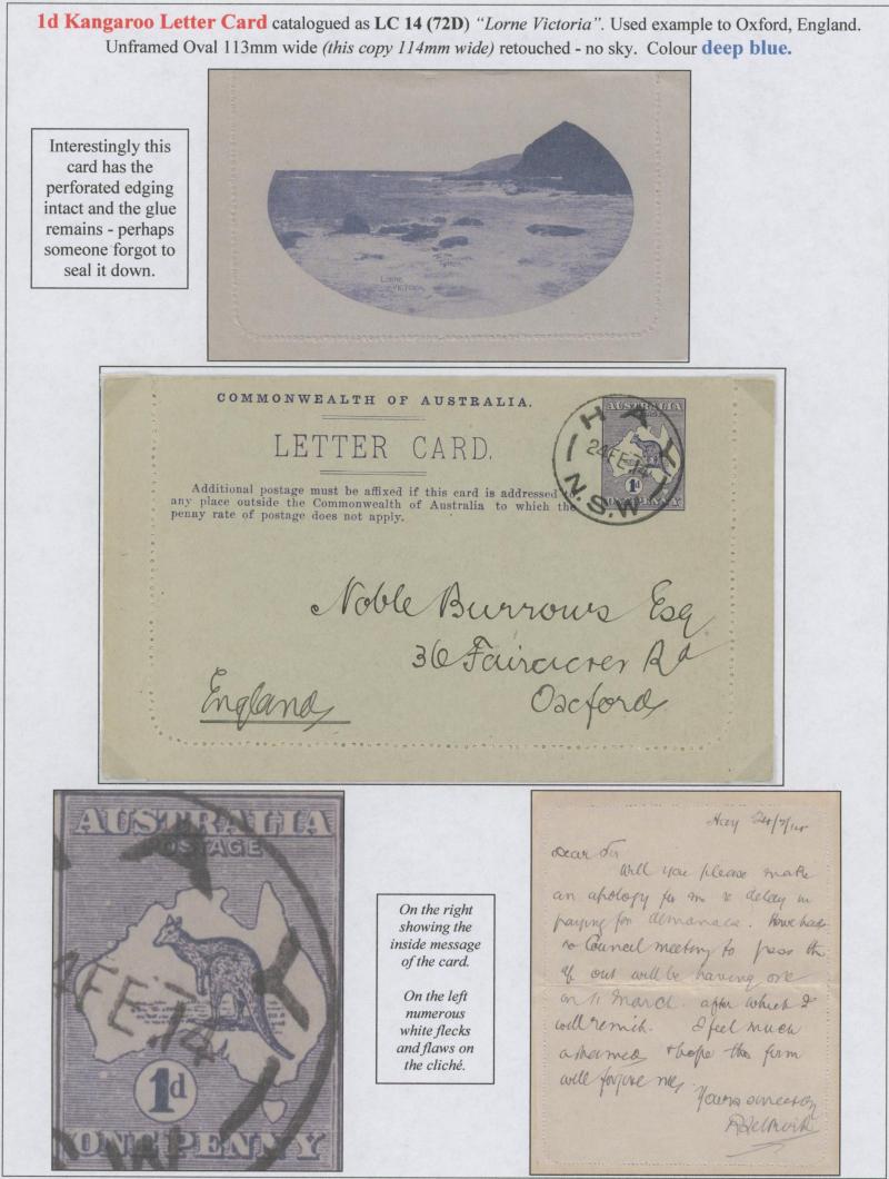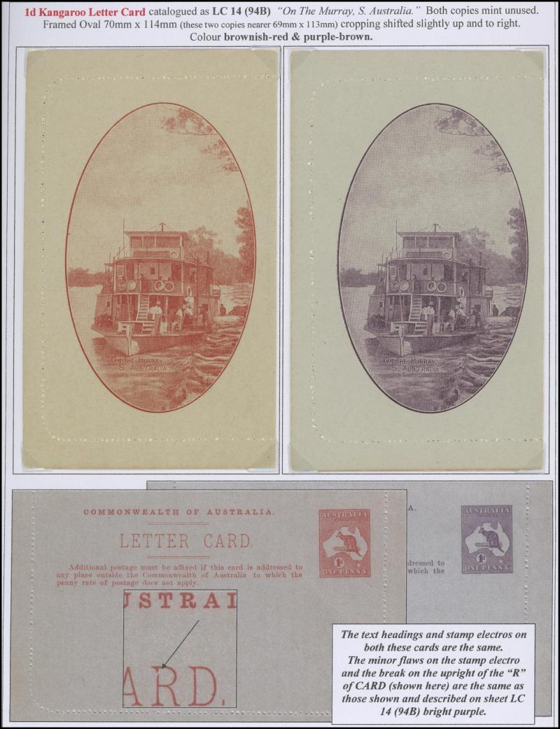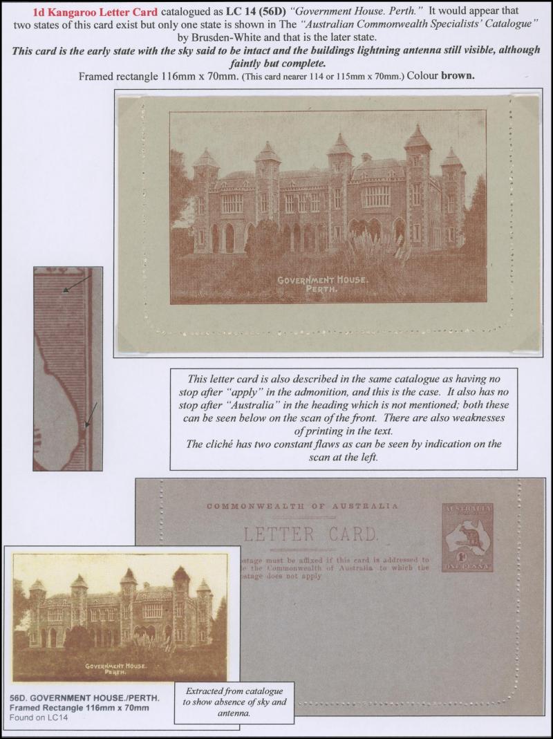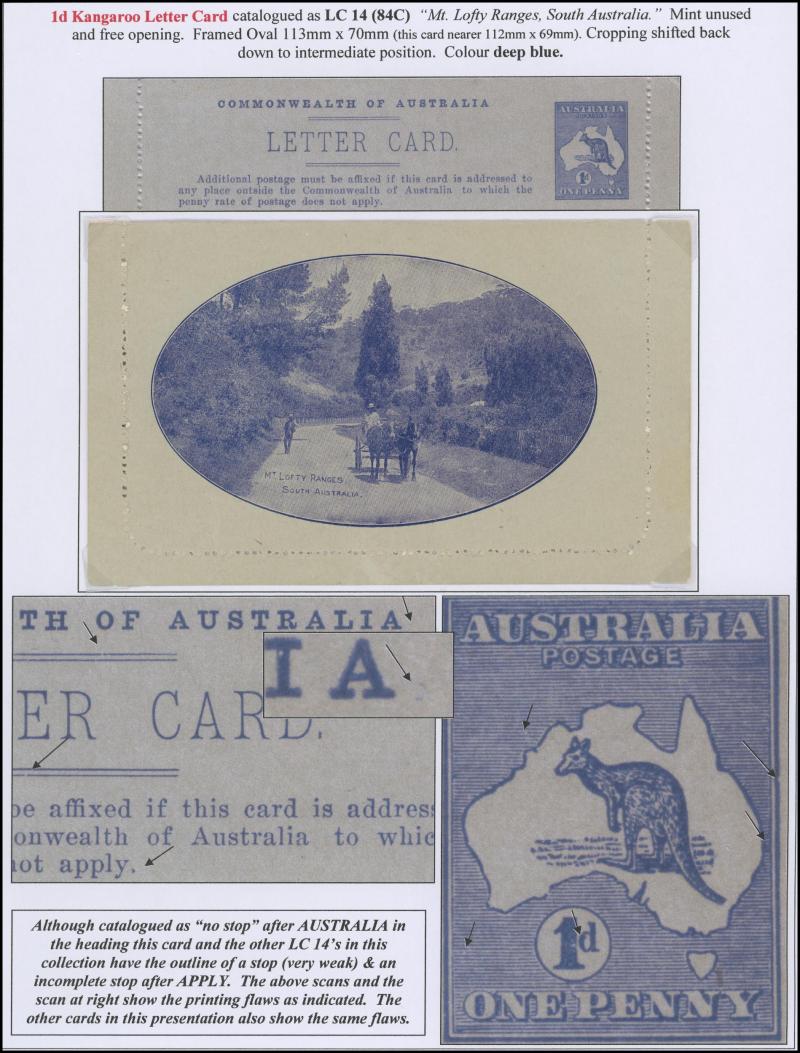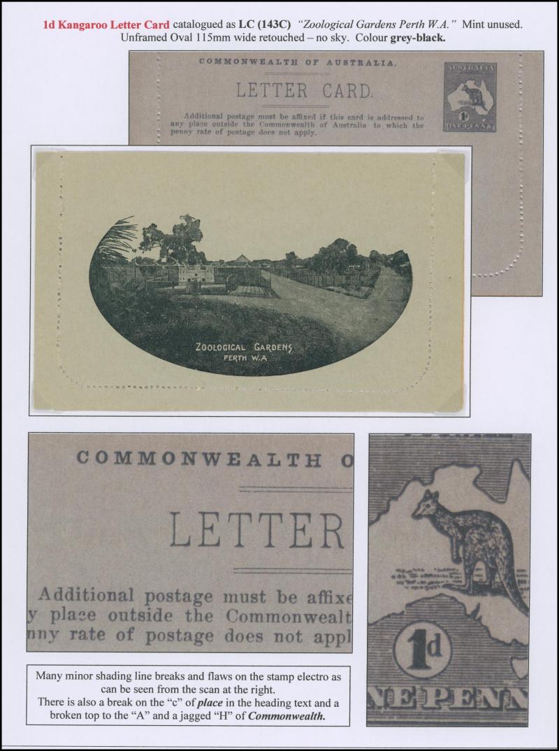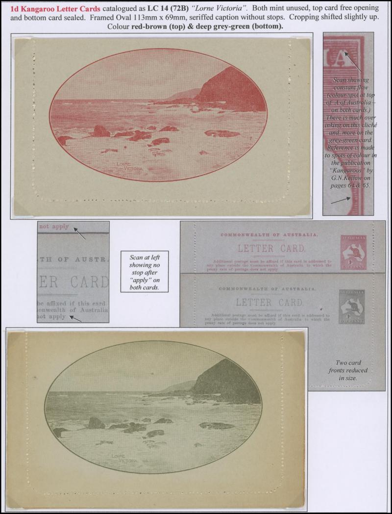 1242 PSE imageLETTER CARDS - SCENIC: Kangaroo 1d Original Die ACSC LC14 extensive collection of unused including 'CATARACT GORGE/LAUNCESTON TAS.' oval x2 & rectangular view, 'CENTRAL RLY STN/BRISBANE' oval with sky & without sky and rectangular, 'THE GORGE/LAUNCESTON TAS.' x5 (two are Setting A), 'GOVERNMENT HOUSE/PERTH' oval & rectangular x2, 'LAKE ST CLAIR/TASMANIA' (boat) x2, 'LORNE/VICTORIA' oval with sky x4 & rectangular x3, 'NATIONAL PARK/N.S.WALES' oval view x4 (two CTO) & rectangular view x2, 'ST GEORGE'S TERRACE, PERTH' oval with sky, oval without sky & rectangular x3 each, 'ZOOLOGICAL GARDENS/PERTH W.A.' oval with sky x3, oval without sky x2 & rectangular x3, etc, excellent range of colours, a few minor blemishes but generally fine to very fine, Cat $14,000+. Ex David Adams, almost all on his pages with copious notes on value indicia & other printing varieties. (89) (Image1) (Image2) (Image3) (Image4) (Image5) (Image6) (Image7) (Image8) (Image9) (Image10) (Image11) (Image12) (Image13) (Image14) (Image15) (Image16) (Image17) (Image18) (Image19) (Image20) (Image21) (Image22) (Image23) (Image24) (Image25) (Image26) (Image27) (Image28) (Image29)