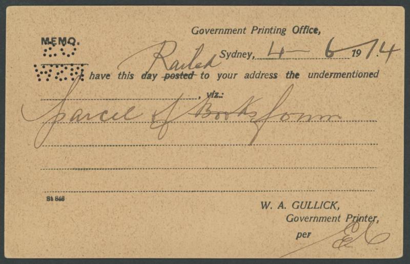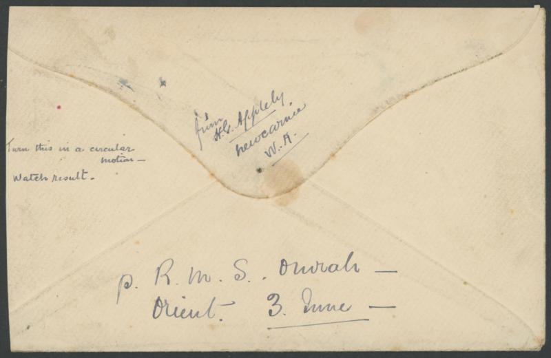 item was almost certainly carried by the RMS Otranto which visited Fremantle on 15.7.1913. Ex David Adams. (Image1) (Image2)