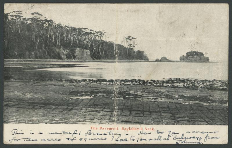 1913 (Jan 28) Tasmanian 'The Pavement, Eaglehawk Neck' picture postcard to Que Que, Rhodesia with Kangaroos 1d red Die II solo tied