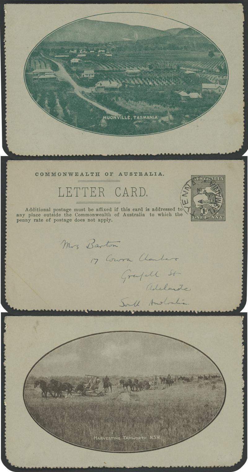 LETTER CARDS - SCENIC: Kangaroo 1d Die II ACSC LC16 unused group including 'AVON RIVER YORK WA' rectangular view, then oval views