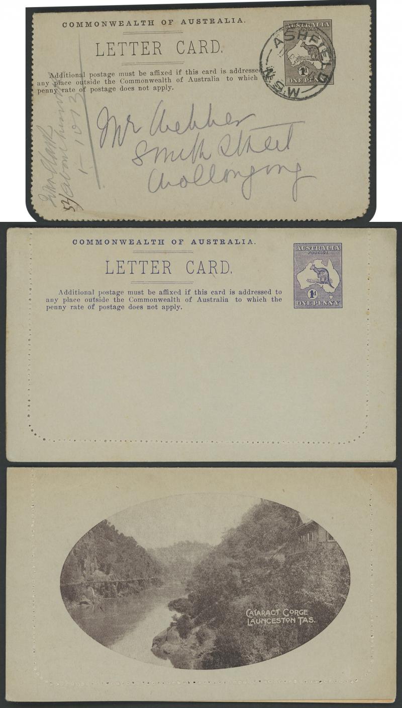 LETTER CARDS - SCENIC: Kangaroo 1d Die I ACSC LC15 unused group including 'BRIDAL VEIL FALLS N.S.W' x4, 'CAIRNS RAILWAY/QUEENSLAND'