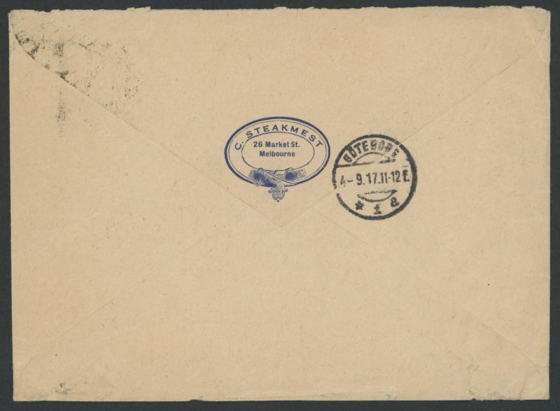 handstamp in violet & Swedish 'GOTEBORG/4.9.17' arrival backstamp, minor bends. (Image1) (Image2)