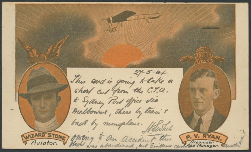1914 (Aug 24) 'Wizard' Stone, Aviator and PV Ryan, Organizer & Manager picture postcard headed 'AUSTRALIA'S/FIRST AERIAL