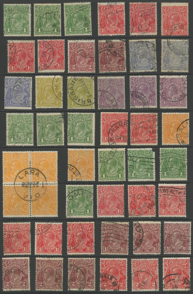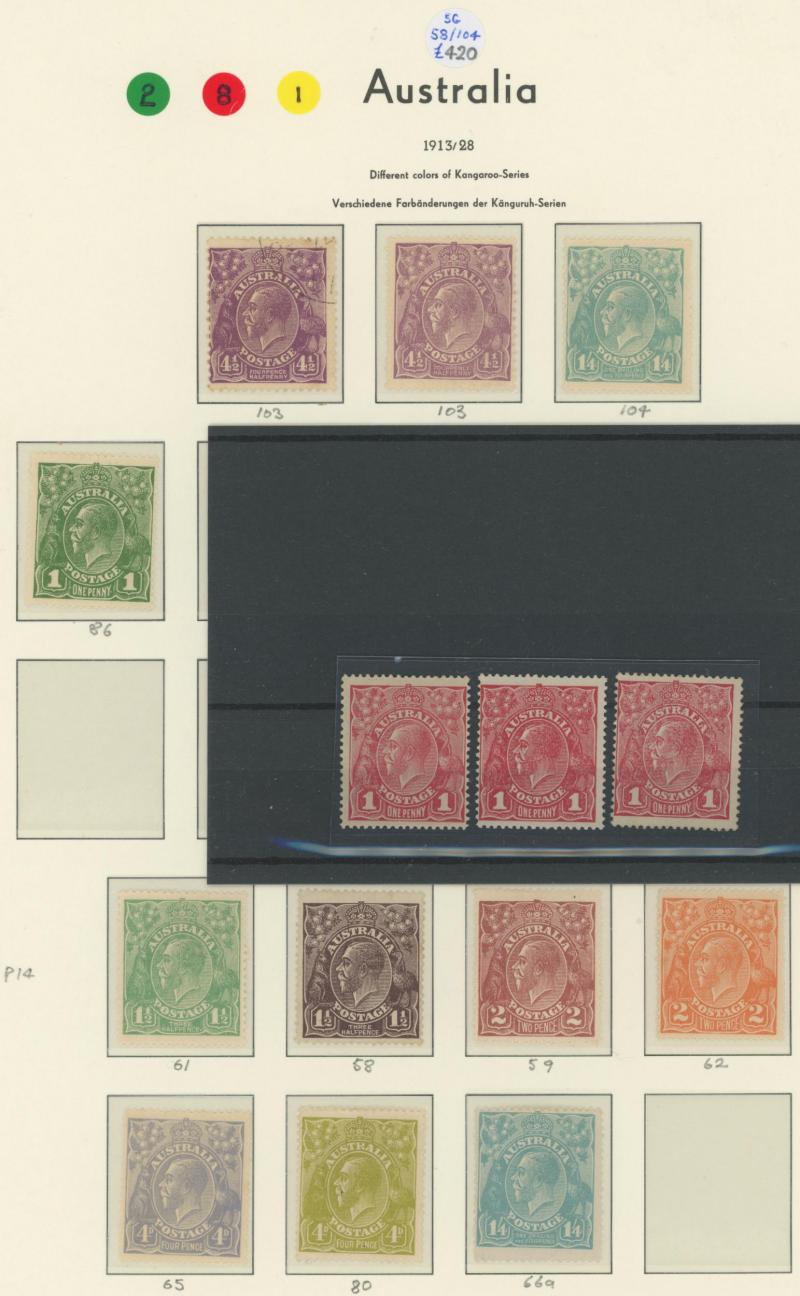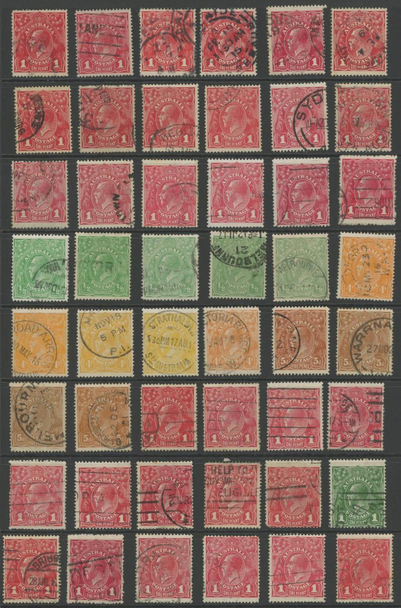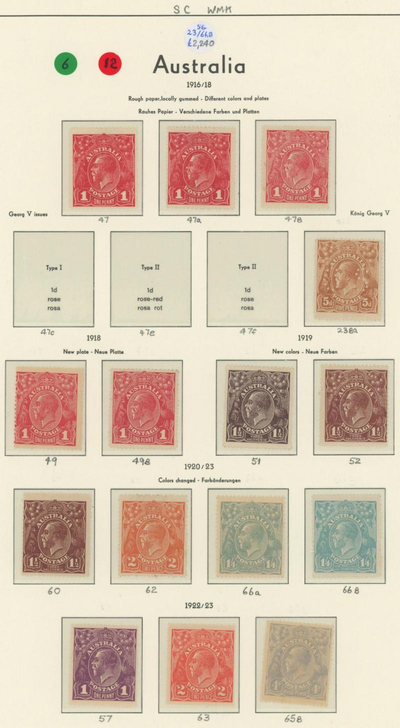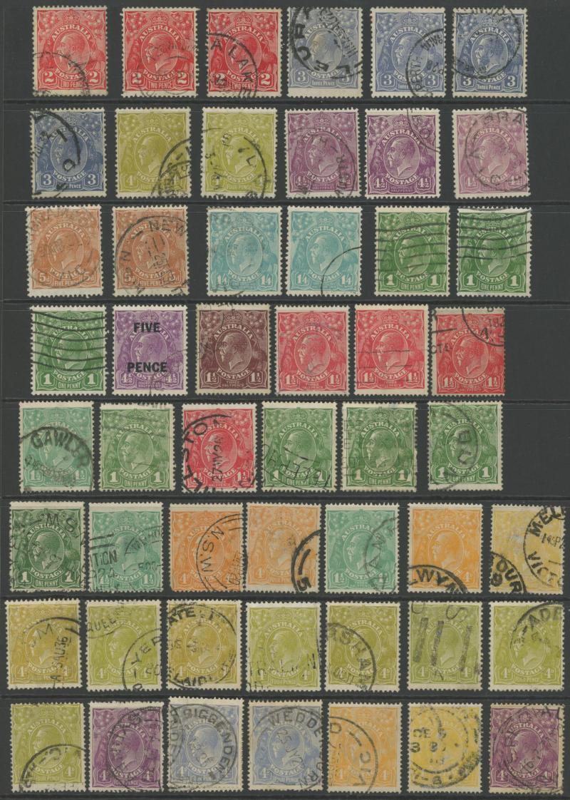 1369 O image1d red Rough Paper ACSC 72 (SG 47) used selection including Die I / Die II block of 4, Die II reconstruction stated to be one example from each of the 20 positions plus punctured 'OS' singles x2 one 'rosine', many ACSC-listed varieties including Substituted Clichés Die I & Die II x4 each, Thin 'G' & Pregnant 'Y' x2 each, Saddle on Emu, 'PENAVY', Rusted Top Right Corner, Colour Flaw outside Frame opposite Emu, Run 'N' of 'ONE' Second State, etc, also Dry Ink, Pre-Printing Paper Fold, Foreign Matter on Plate, and a couple of Tin Shed flaws, condition a little variable but most are fine to very fine, Cat $4500+. Ex Graeme Stephensen (on his annotated display pages). (70+) (Image1) (Image2) (Image3) (Image4) (Image5) (Image6) (Image7) (Image8) (Image9) (Image10) (Image11)