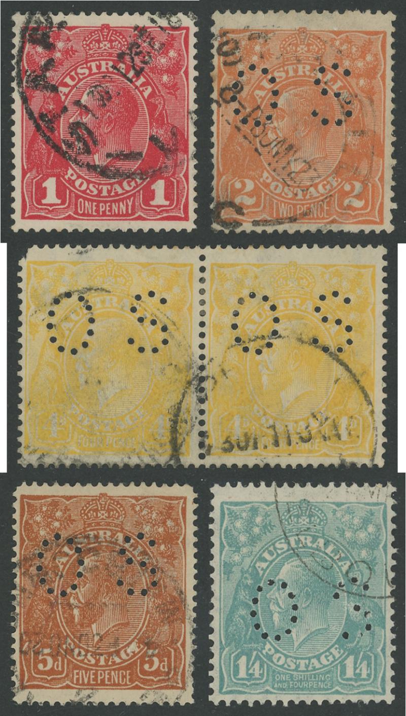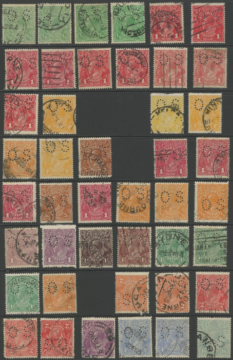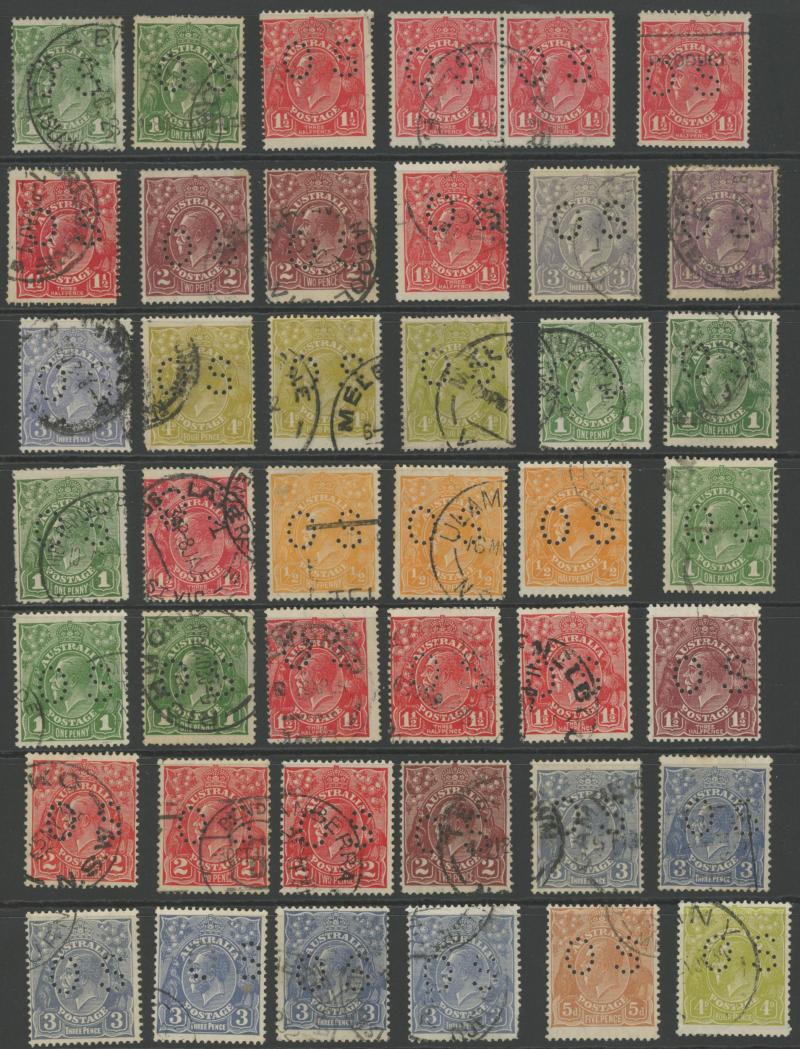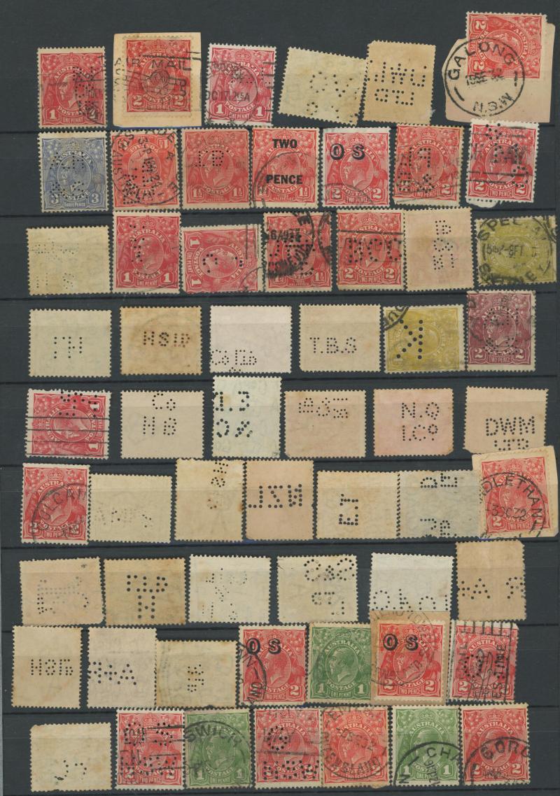 1354 O= imageAlbum of official and commercial perfins, plus 100s of postmarks, many on piece including scarce markings. (100s) (Image1) (Image2) (Image3) (Image4) (Image5) (Image6) (Image7)